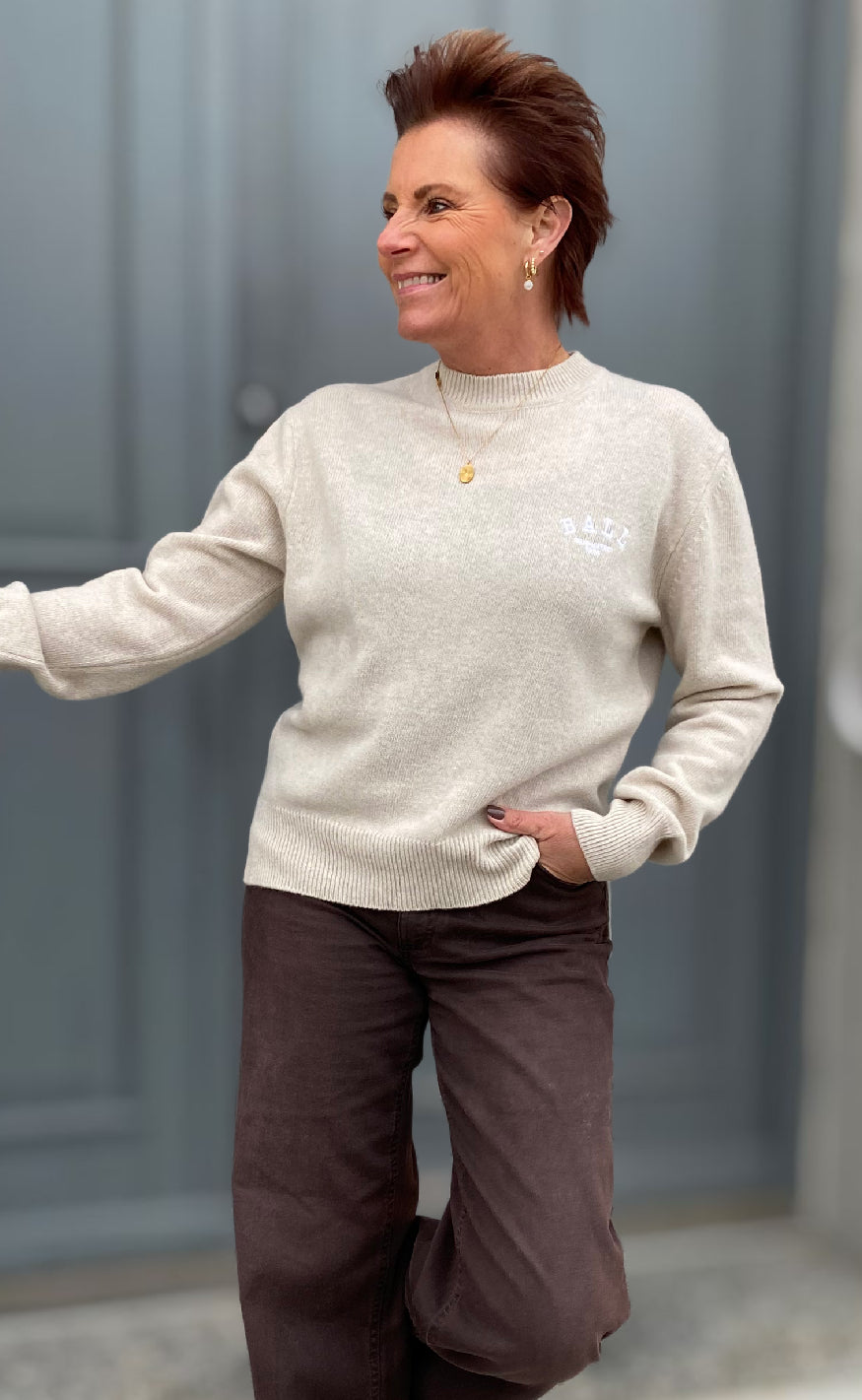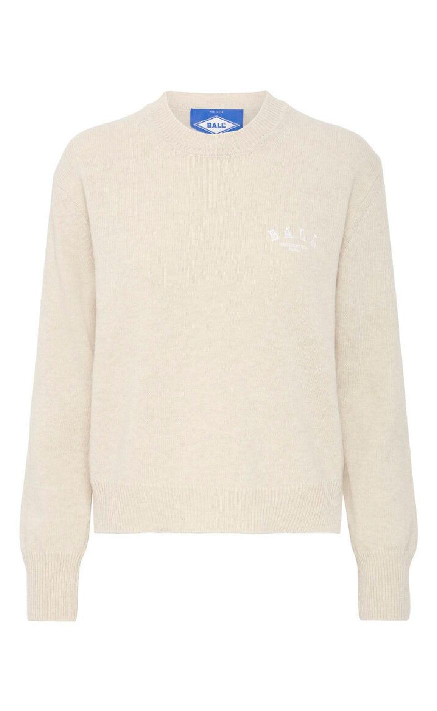 Strik pullover fra BALL Original i beige, med skrift fortil.