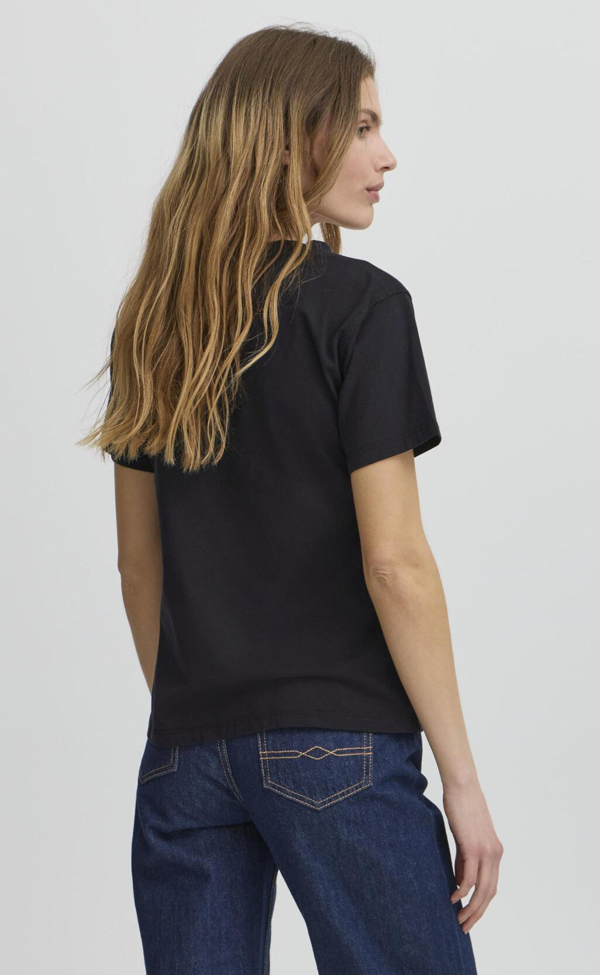T‑shirten har korte ærmer, rund hals og en afslappet pasform, som giver et sporty og tidløst udtryk.