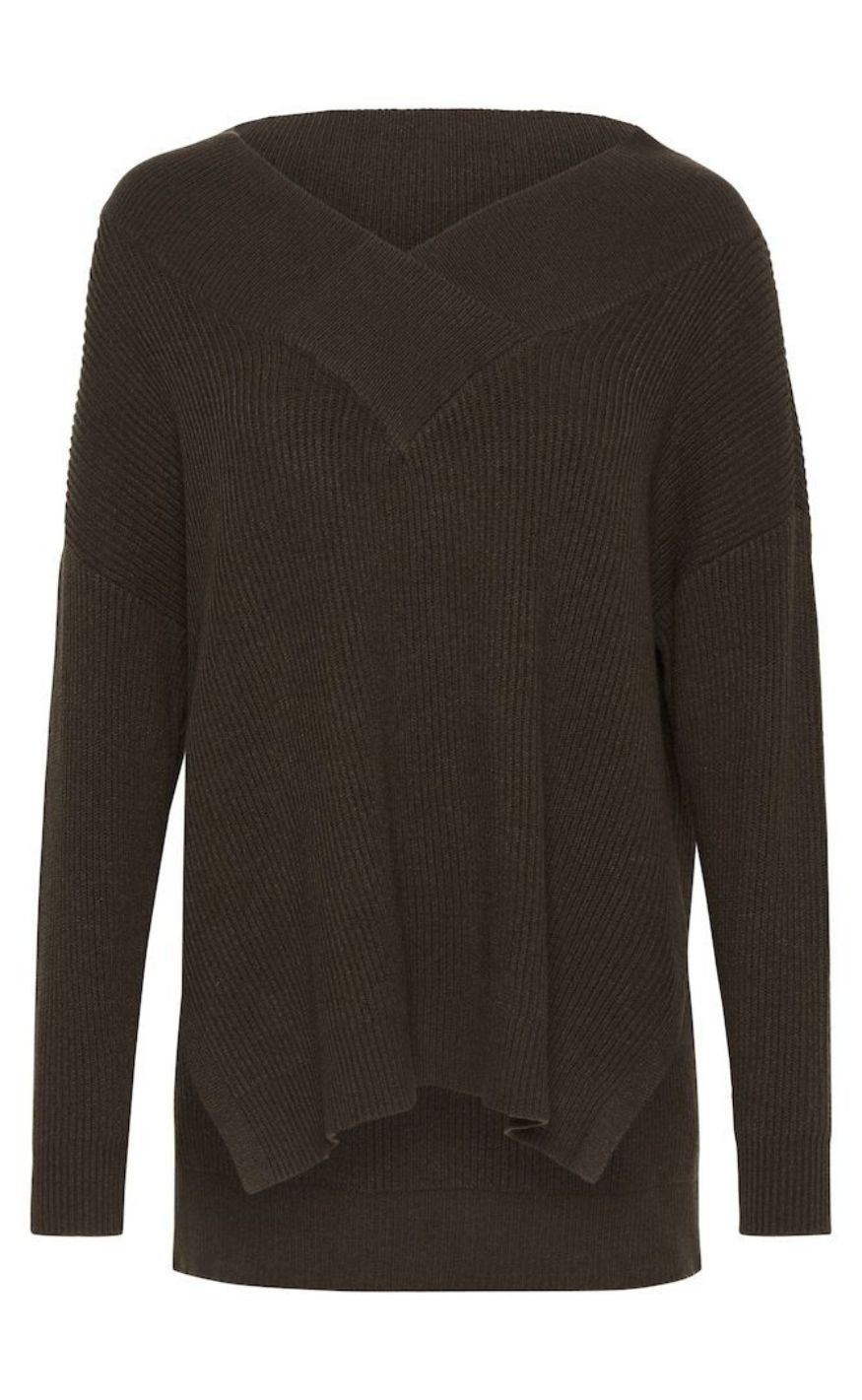 Flot og enkel strik fra Culture i brun med v-neck og slids i begge sider