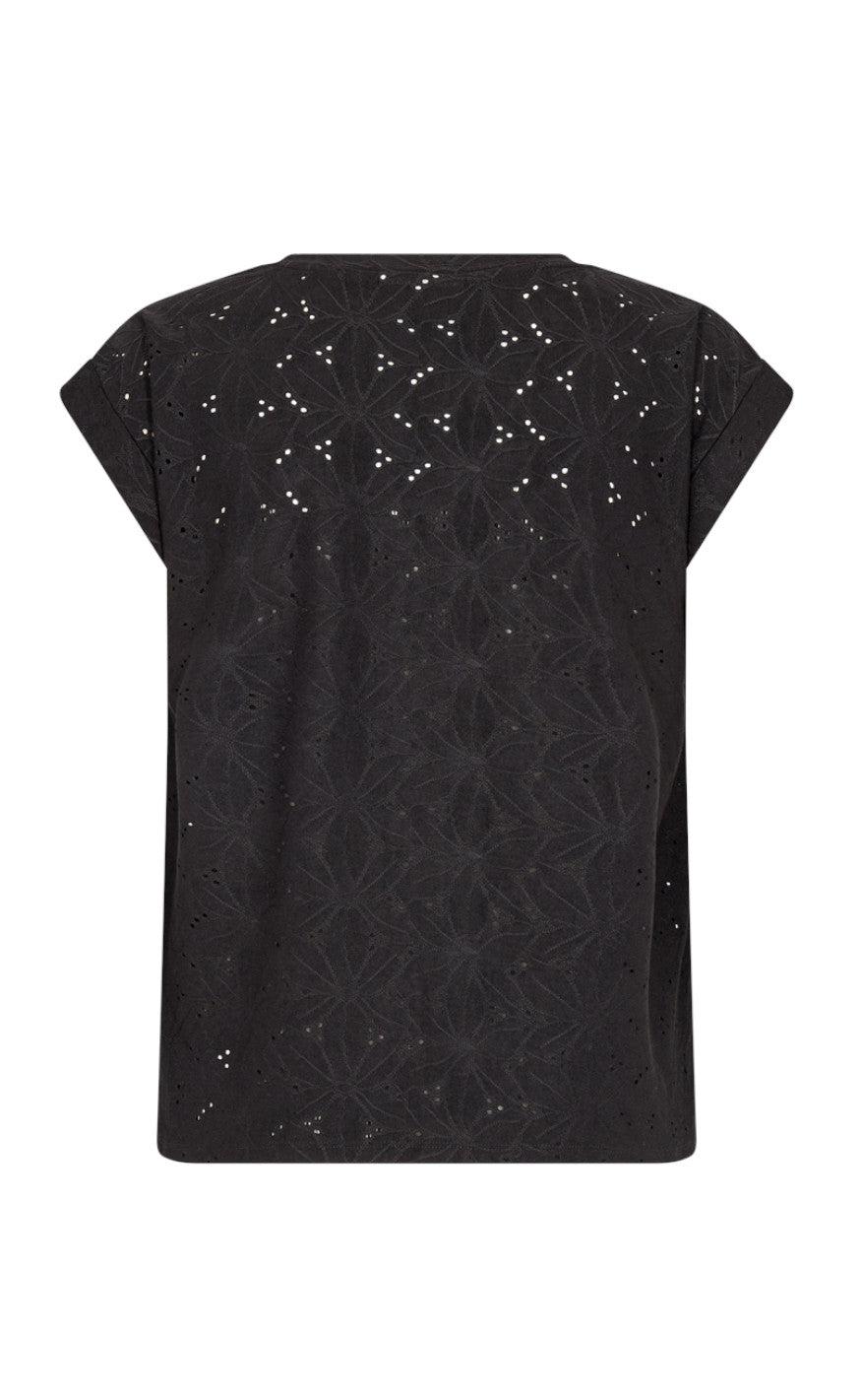 Dejlig t-shirt fra FreeQuent i sort med det smukkeste blondemønster.
