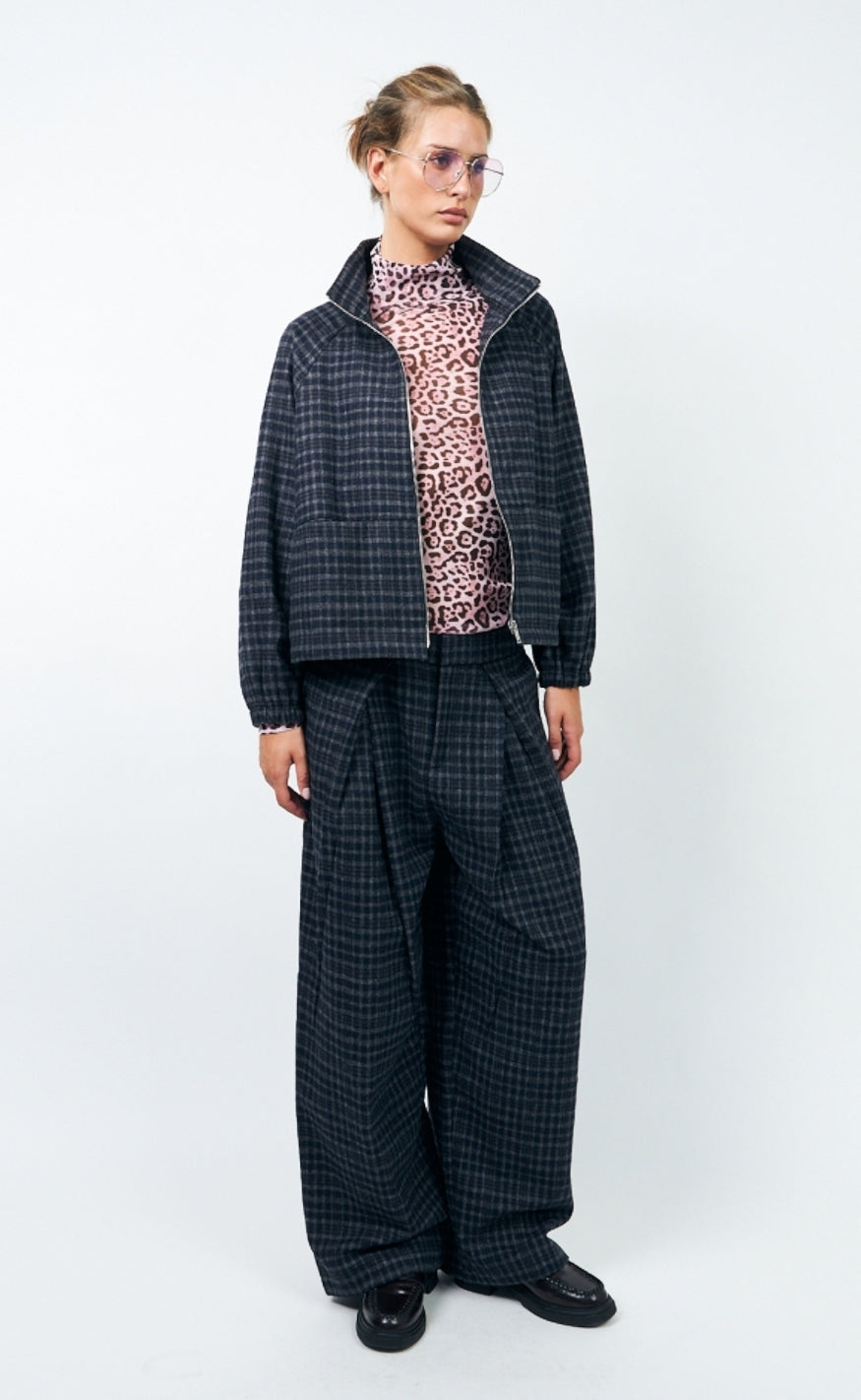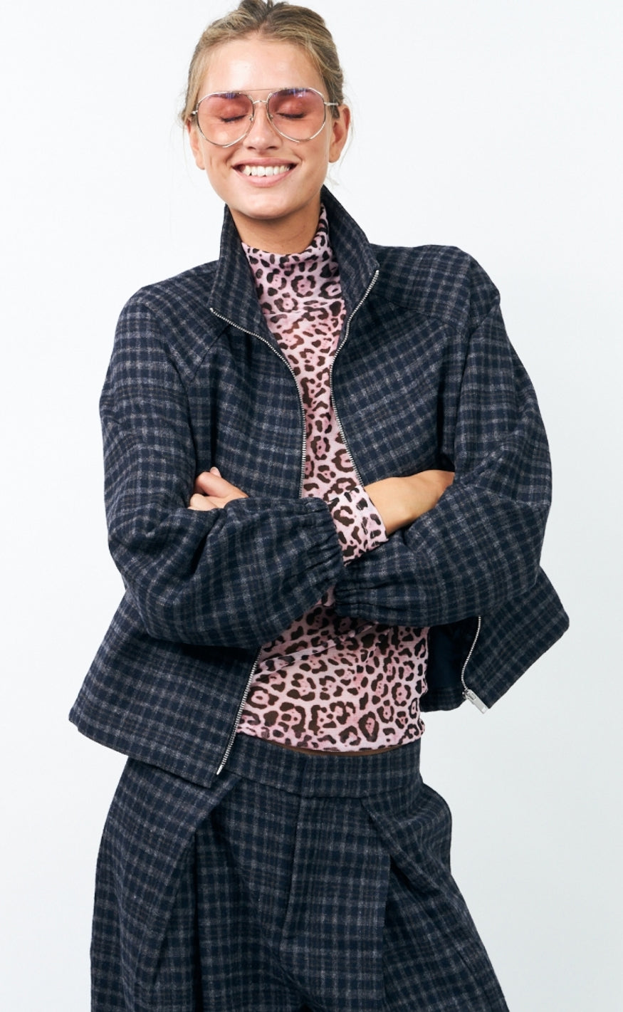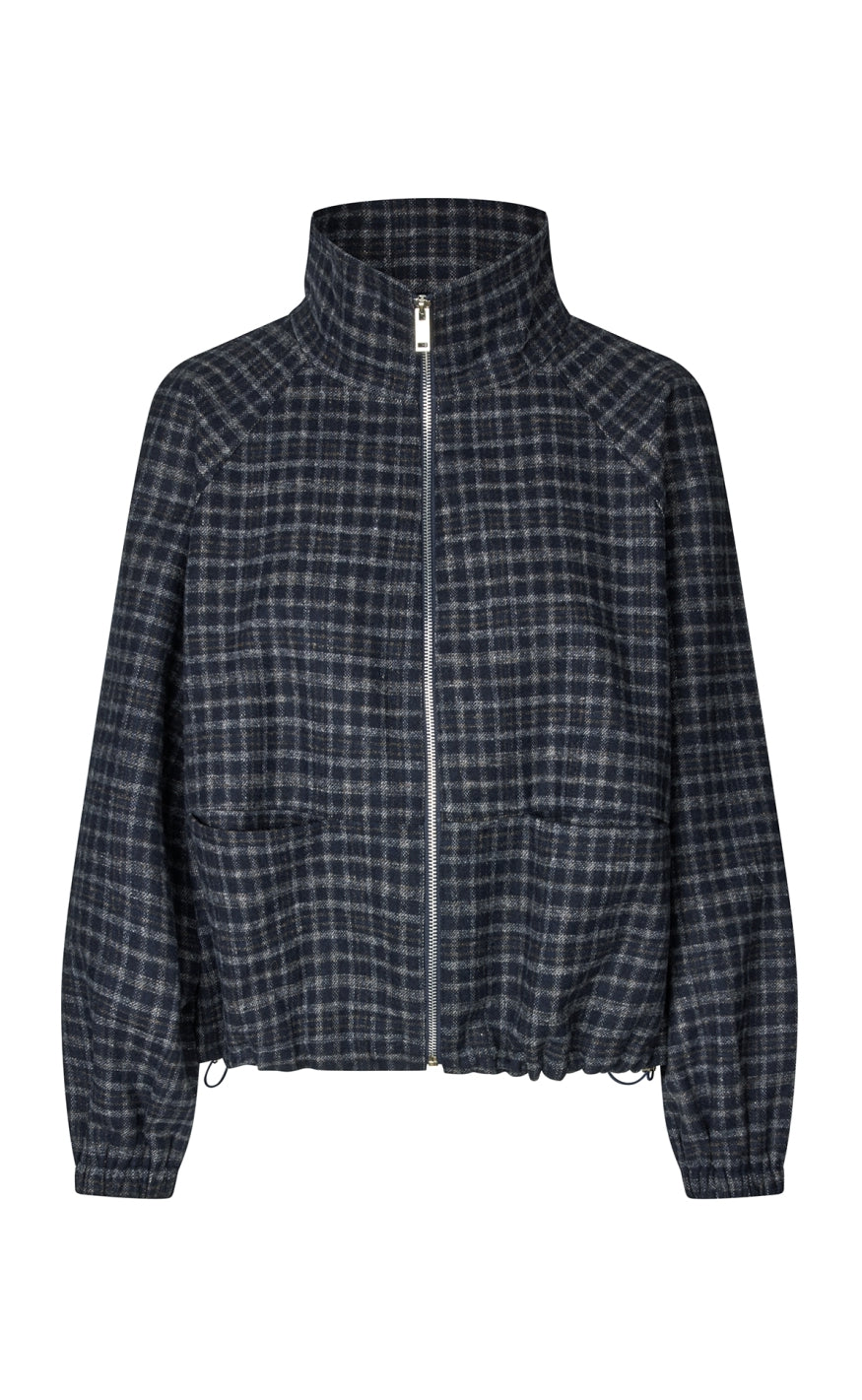 Cool og casual jakke fra Lollys Laundry i et mørkeblåt ternet mønster.