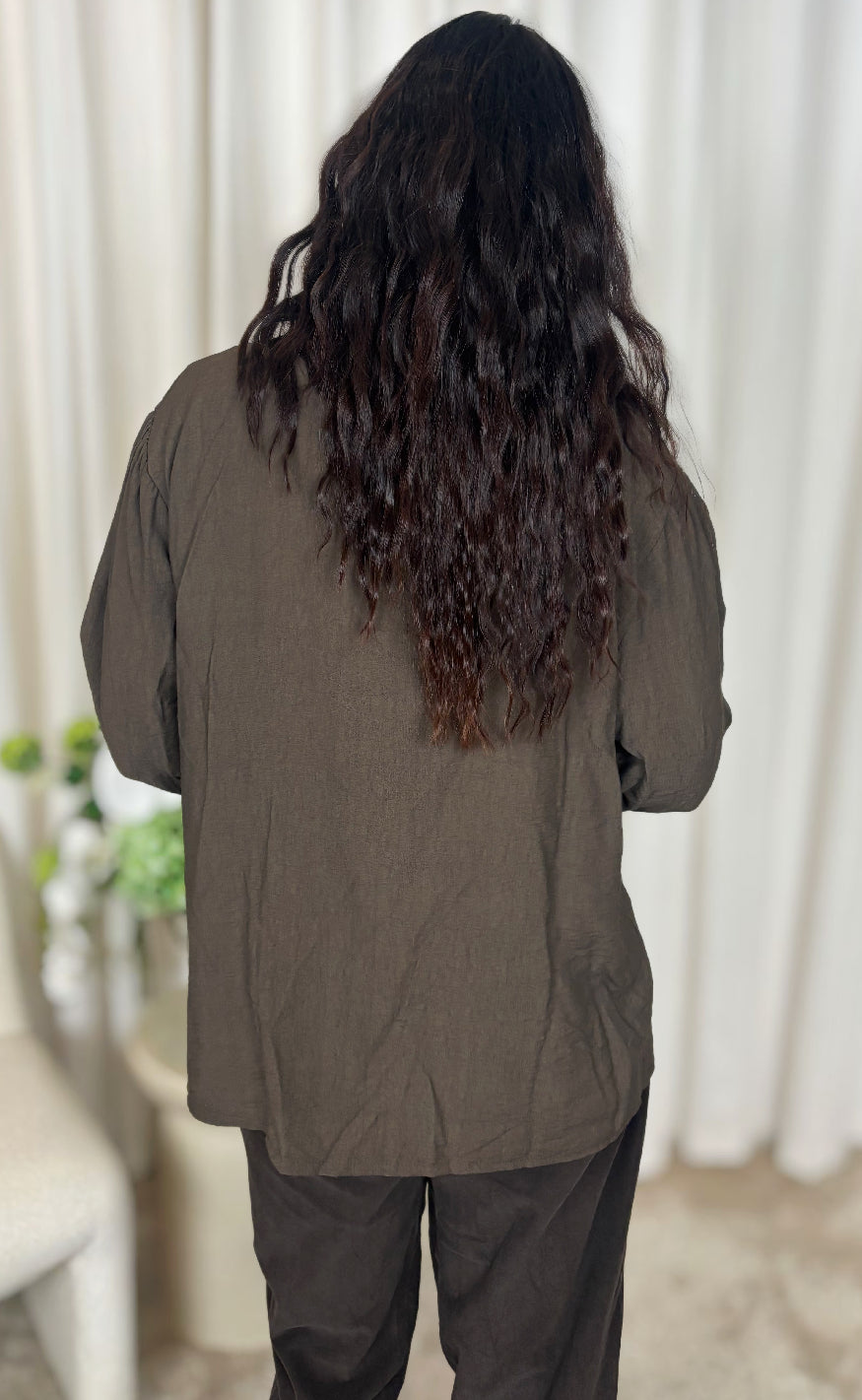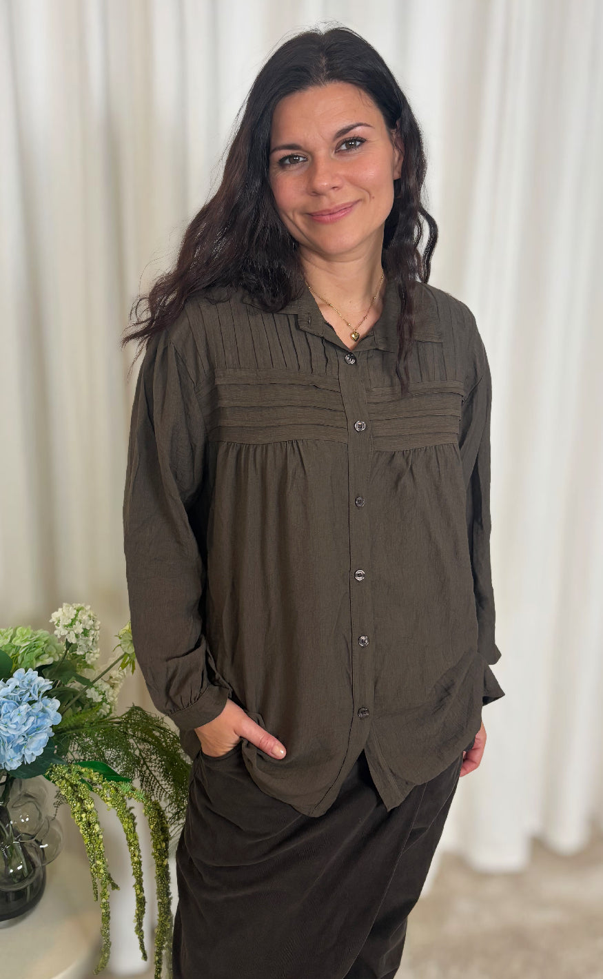 Fin bluse fra Marta Du Chateau i mørkebrun.