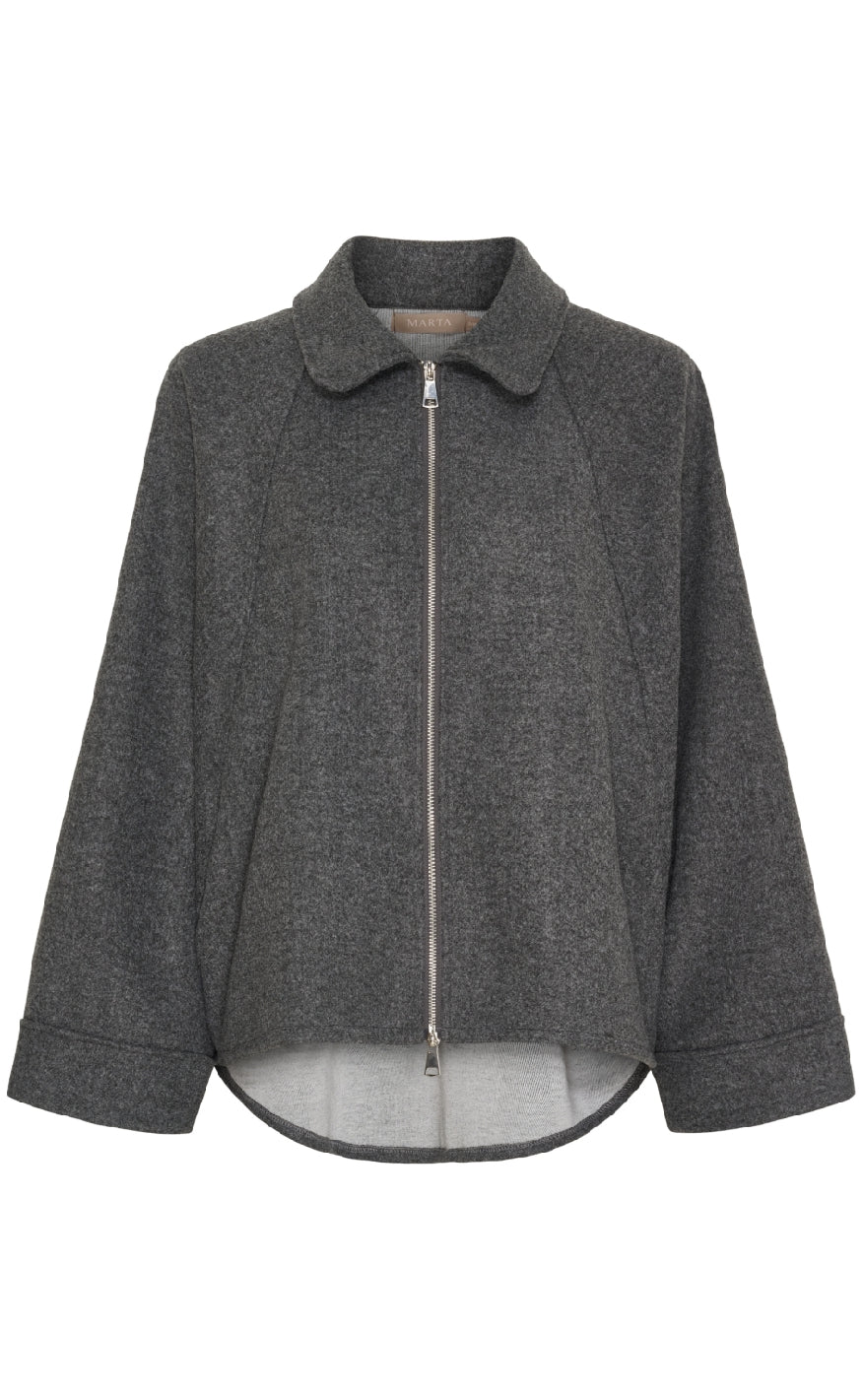 Grå jakke fra Marta Du Chateau med klassisk krave og lynlåslukning foran.