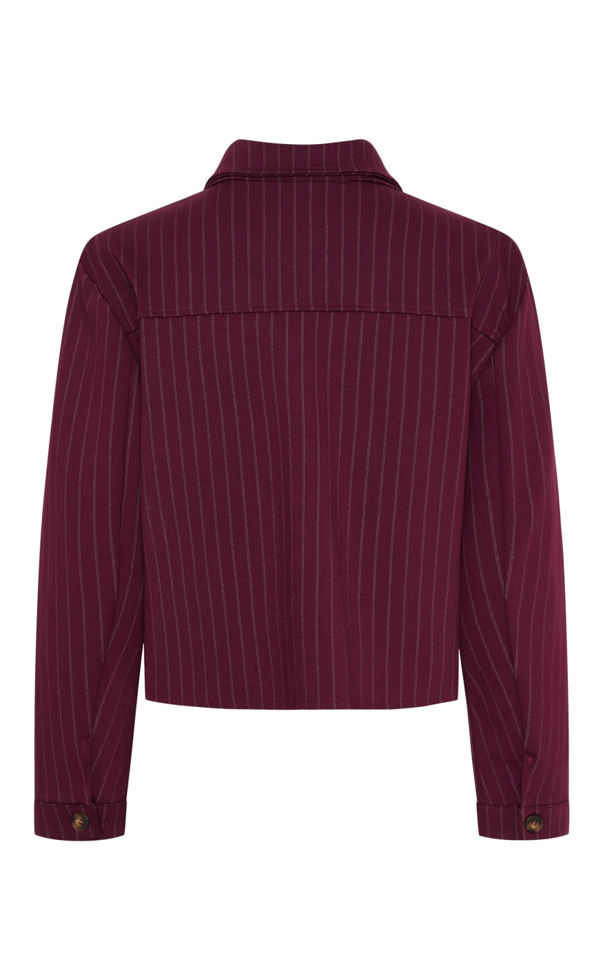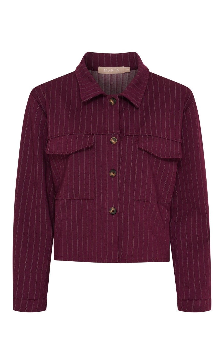 Cropped jakke fra Marta Du Chateau i bordeaux rød med striber.