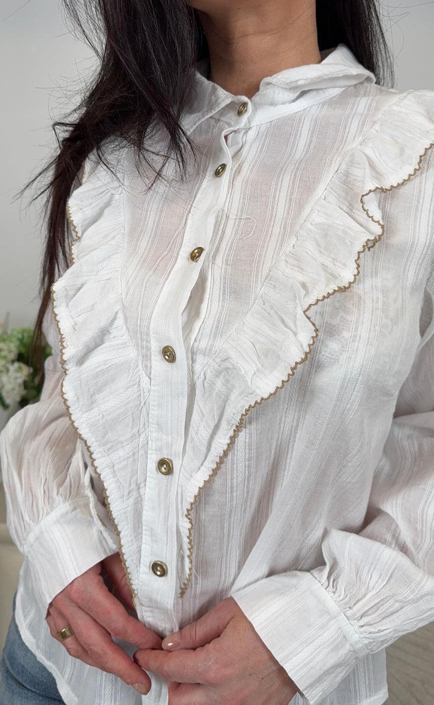 Hvid skjorte fra Marta Du Chateau med et feminint udtryk.