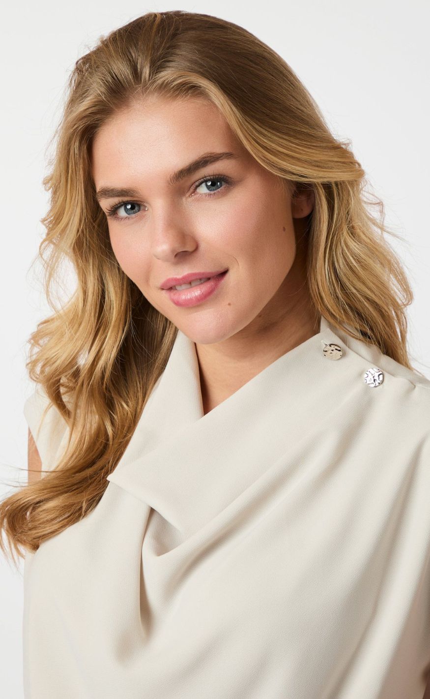 Feminin bluse fra Neo Noir med deco knapper ved halsudskæringen.