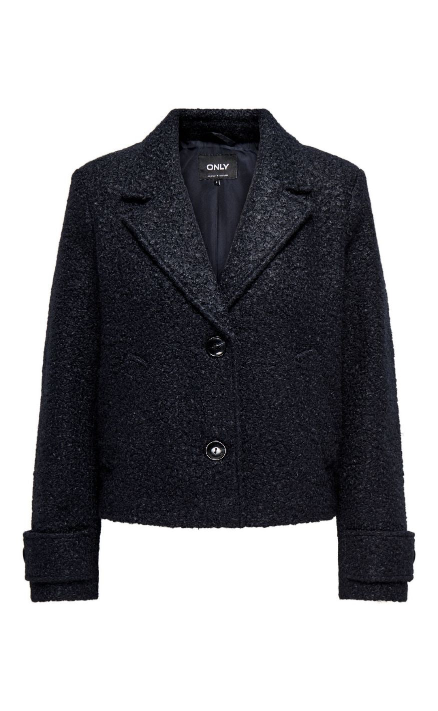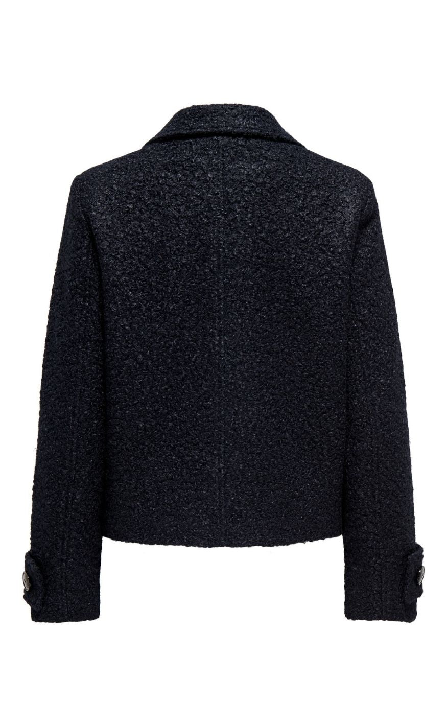 Stilfuld bouclé jakke fra ONLY. Jakken har en klassisk, kort pasform med bred reverskrave og knaplukning, som giver et chic look.