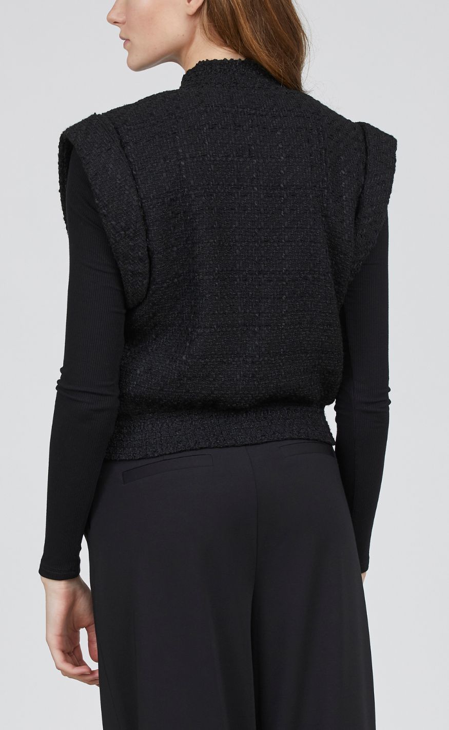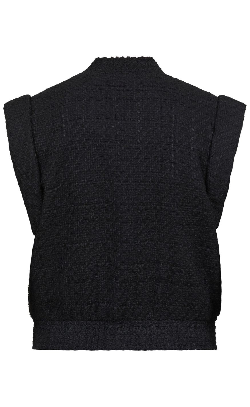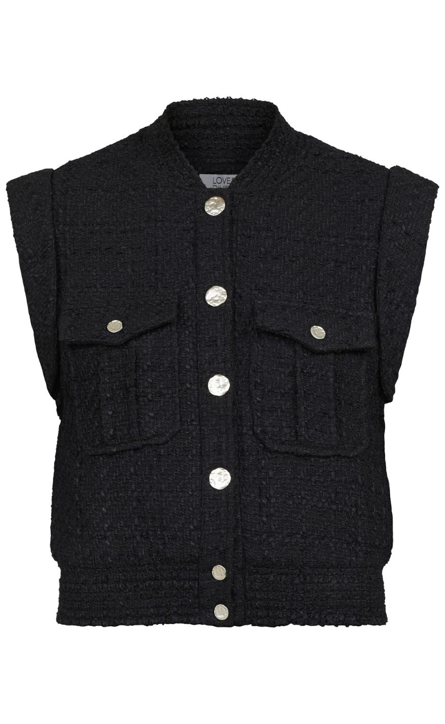 Kort og feminin vest fra Love & Divine med elastik og rustikke sølv knapper.