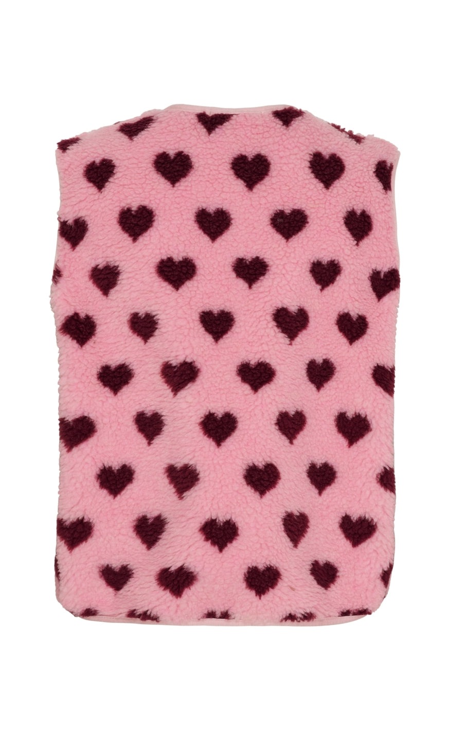 Hyggelig vest fra Marta Du Chateau i brun teddy med lyse hjerter.