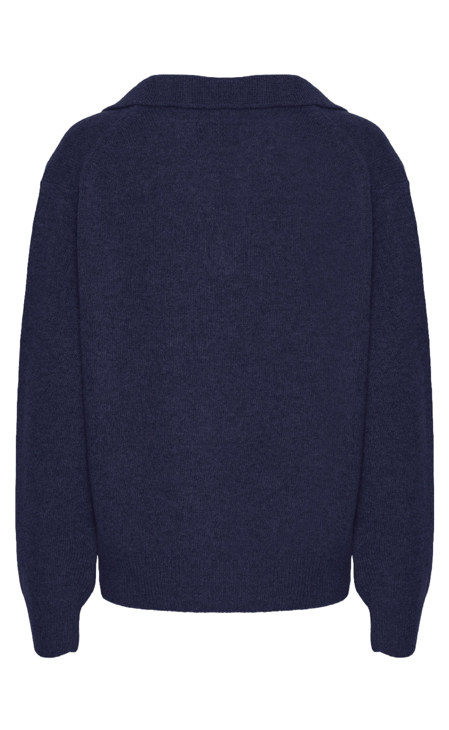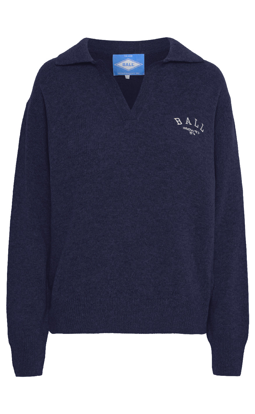 Lækker strik pullover fra BALL Original i mørkeblå ved en polo krave.