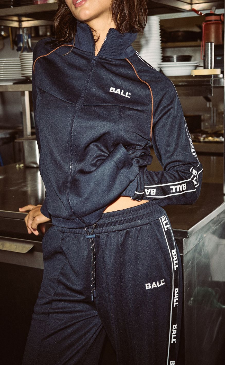 BALL-logostriber langs ærmerne og diskrete kontrastdetaljer tilfører et sporty look, som gør jakken nem at style til både hverdag og pænere outfits.