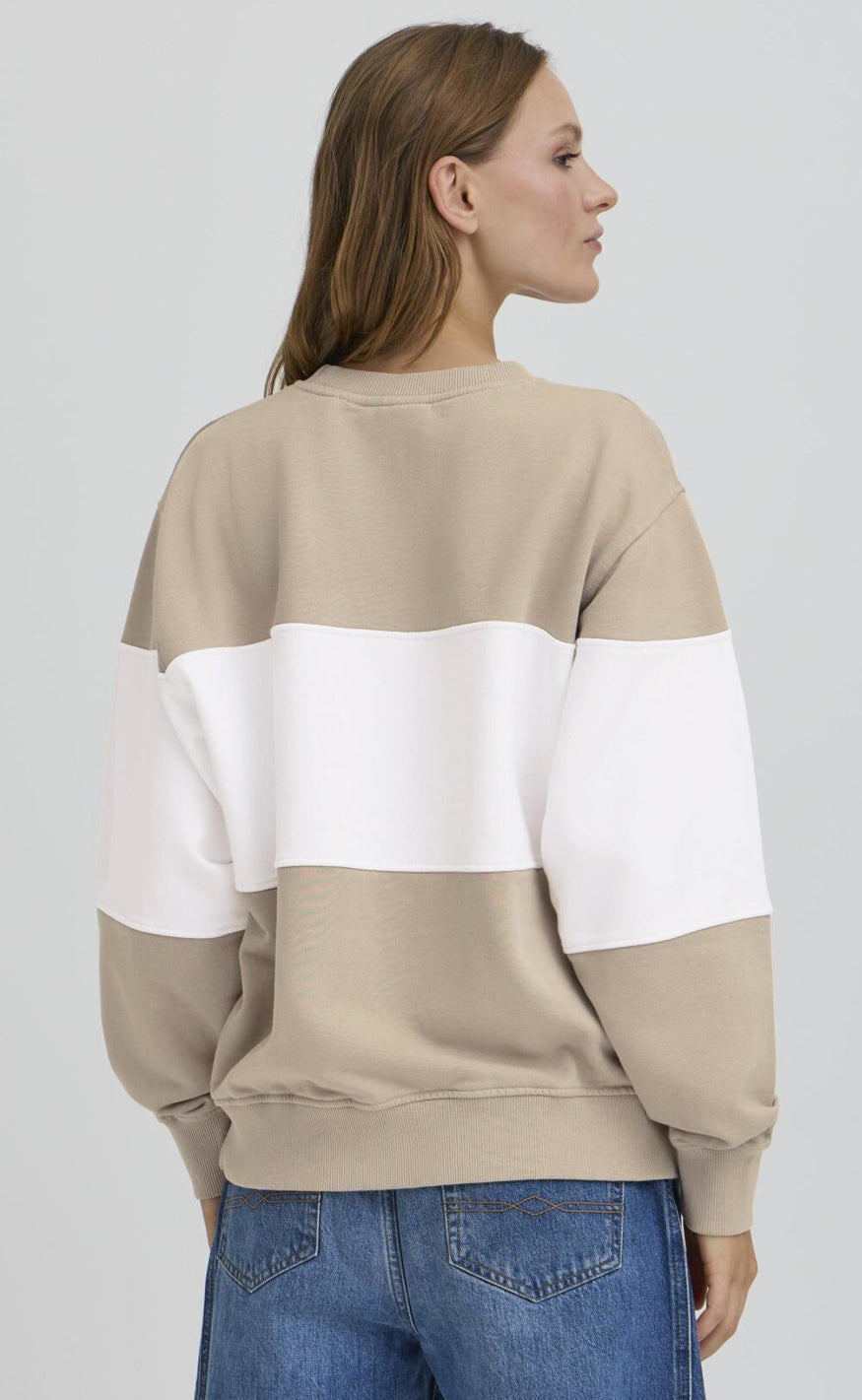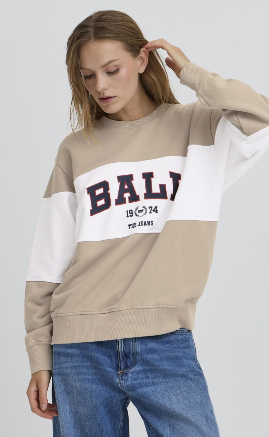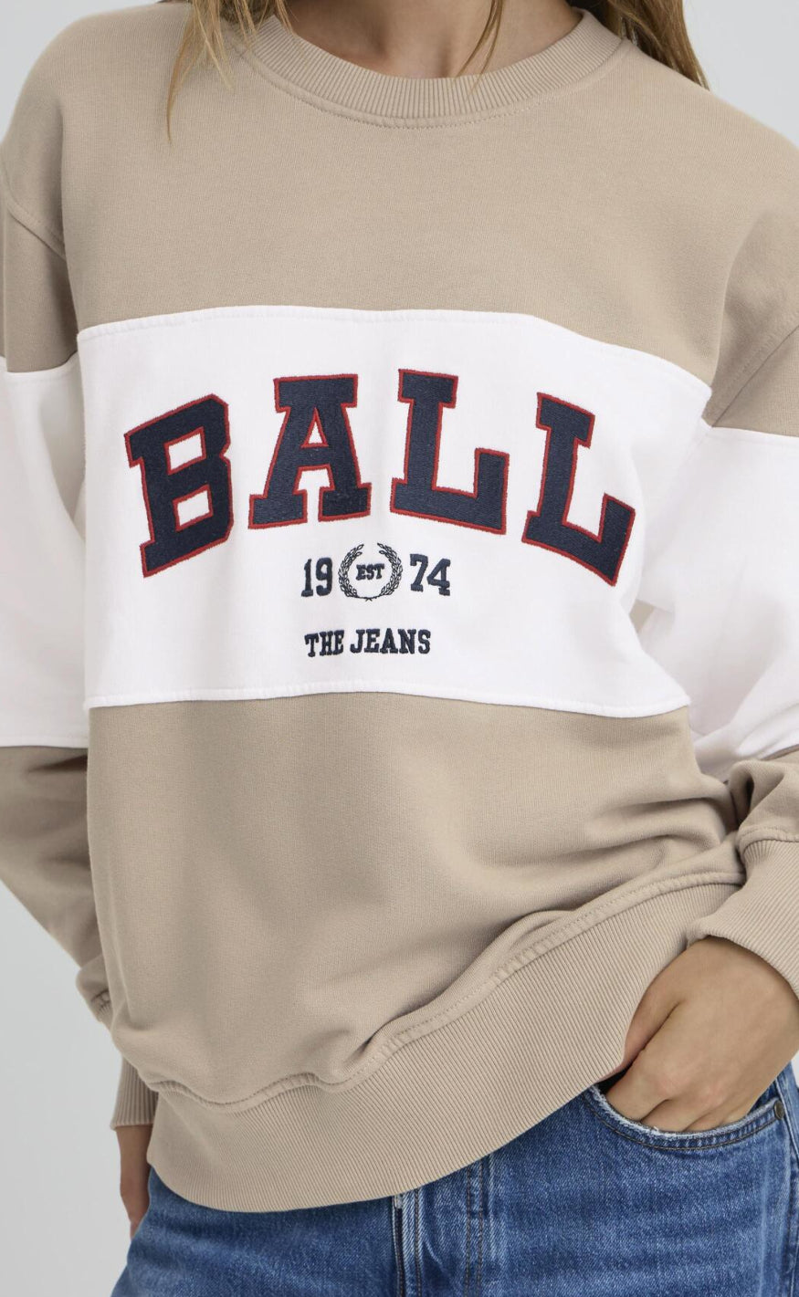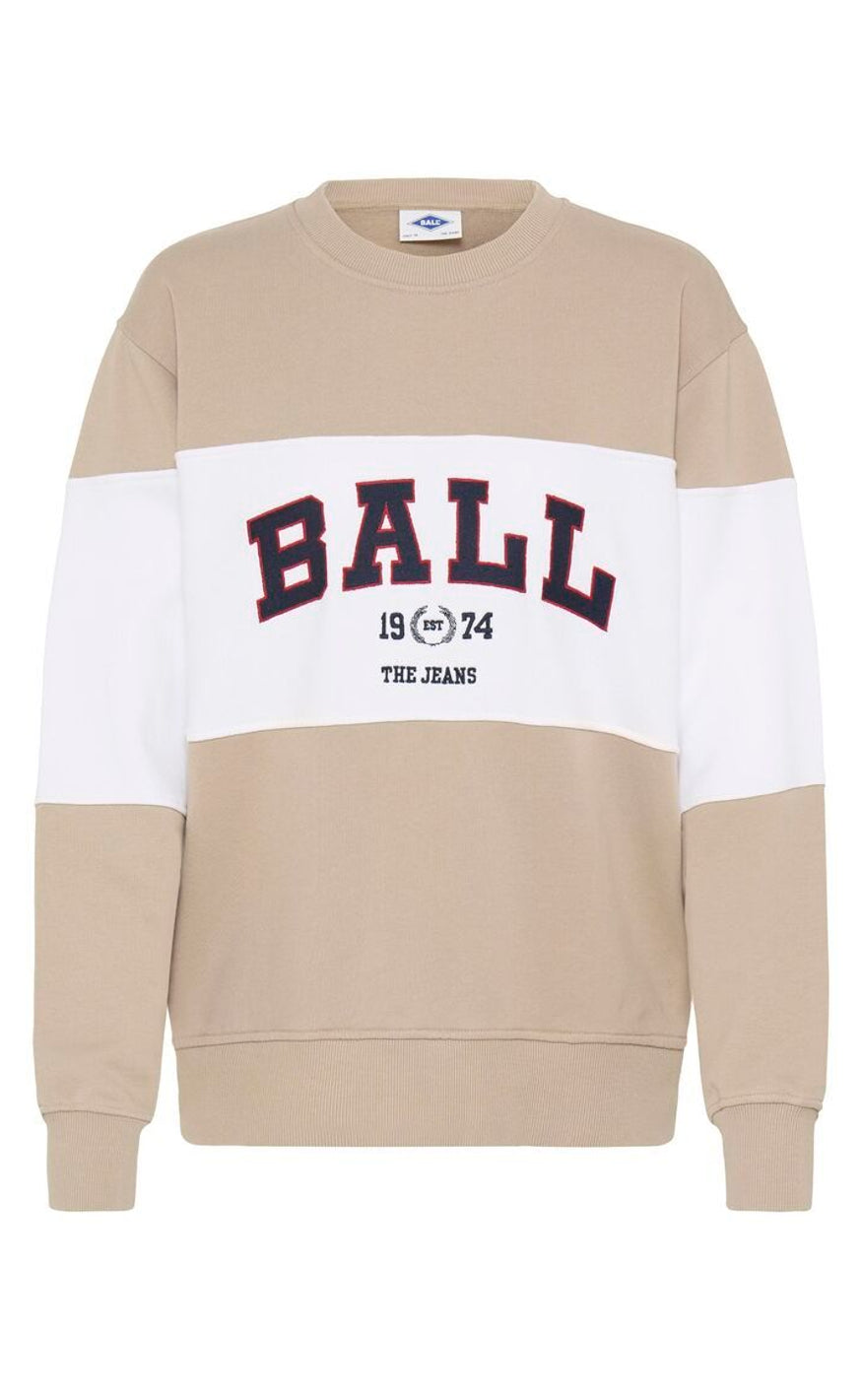 Sporty og casual sweatshirt fra BALL Original i en kombination af beige og hvid med stort kontrastlogo på brystet.