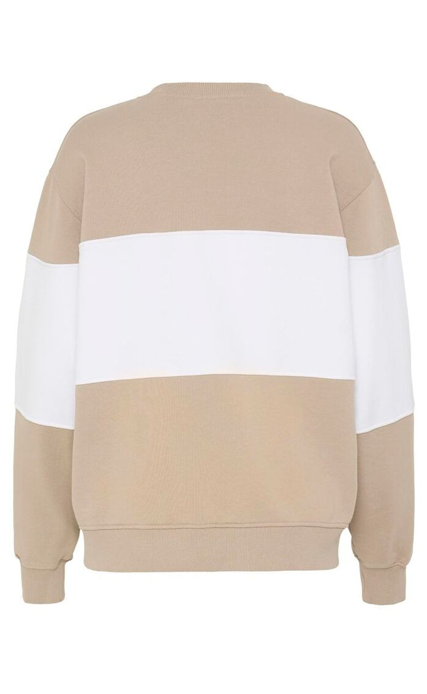 Sweatshirten har lange ærmer, rund hals og ribkanter, som giver et moderne og afslappet udtryk.