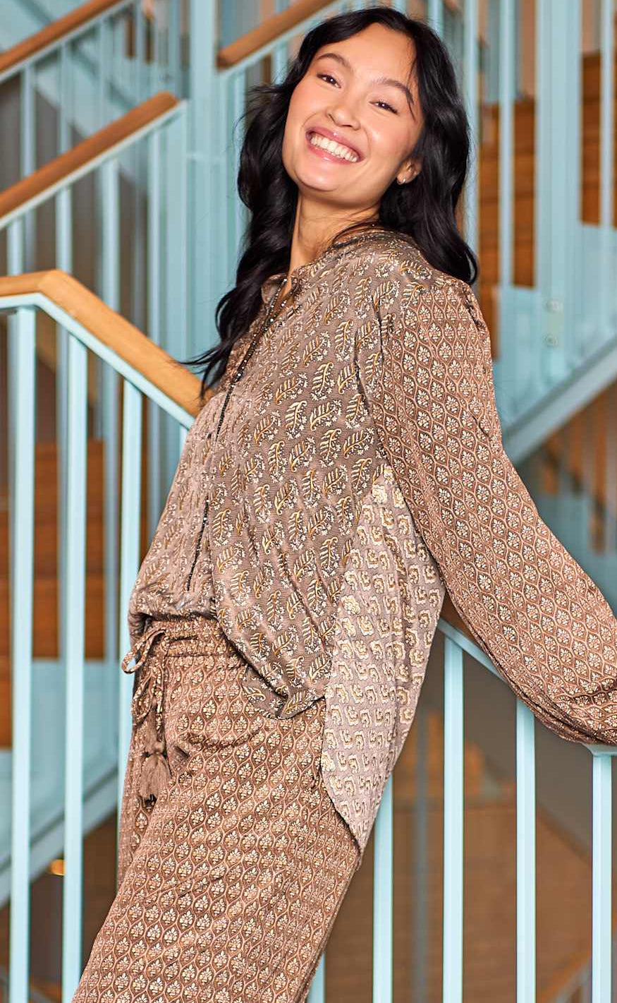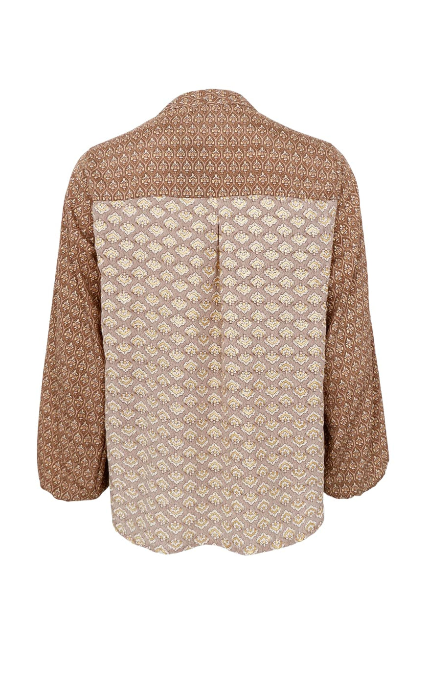 Let og feminin bluse fra Black Colour i et smukt brunligt print med fine, detaljerede mønstre.