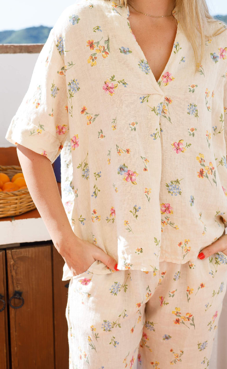Flot hør bluse fra Black Colour i et blomsterprint.