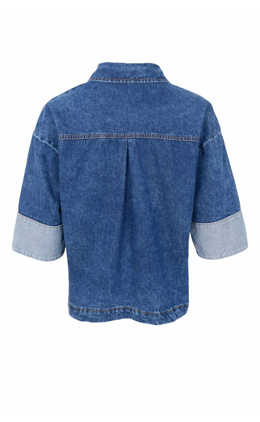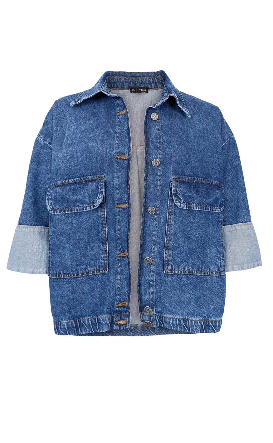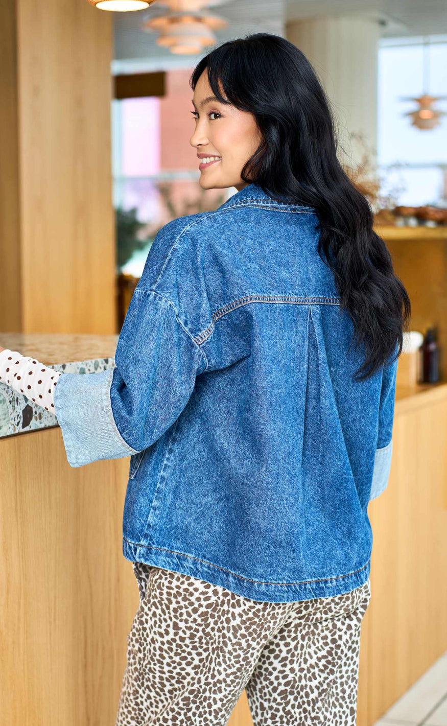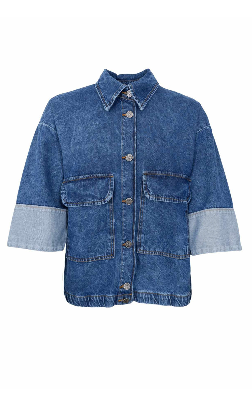 Cool denimjakke fra Black Colour i en mellemblå vask med kontrastdetaljer på ærmer og lommer.
