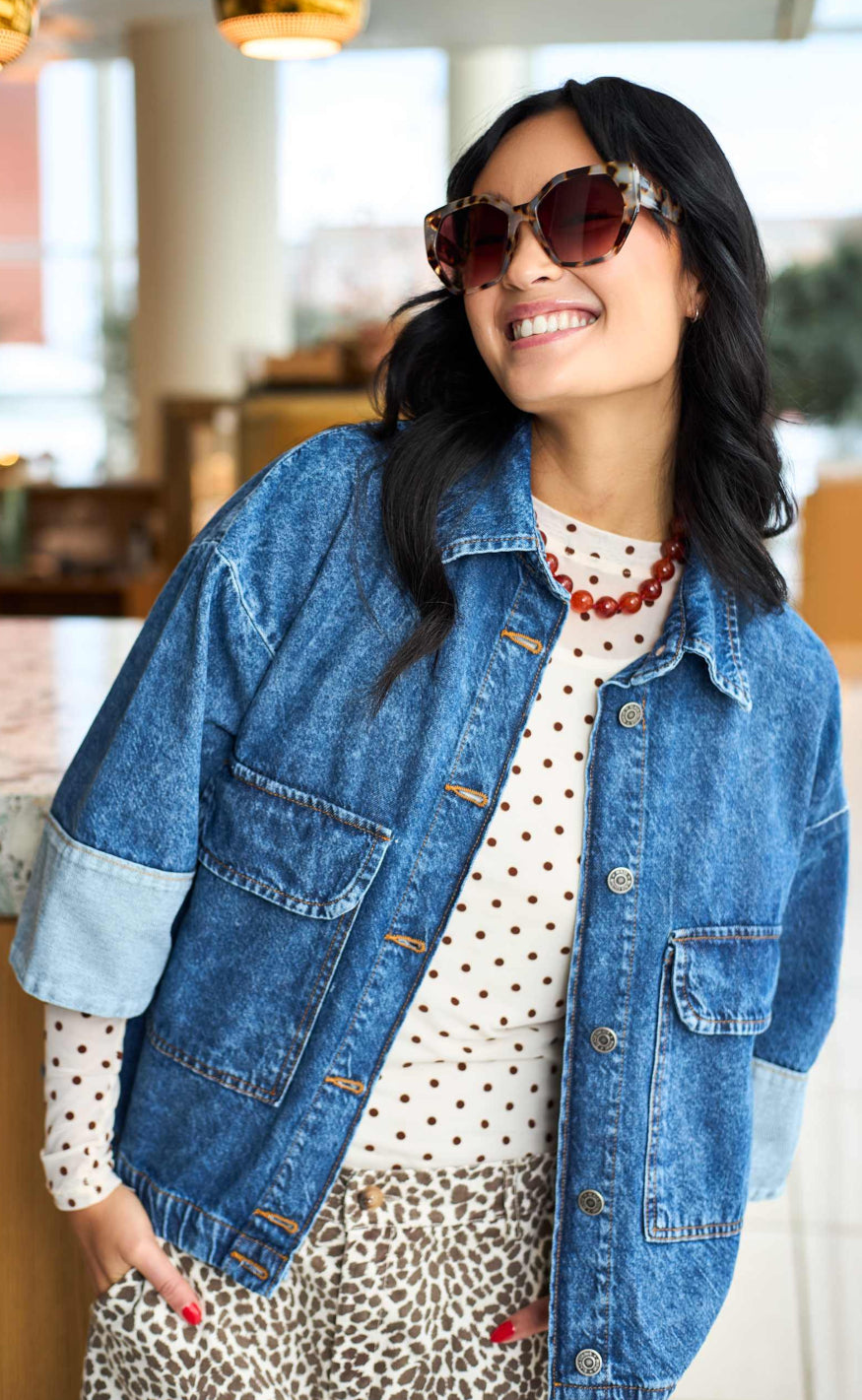 Jakken har klassisk krave, gennemgående knaplukning og store frontlommer samt en let afslappet pasform, der giver et moderne og stilrent udtryk.