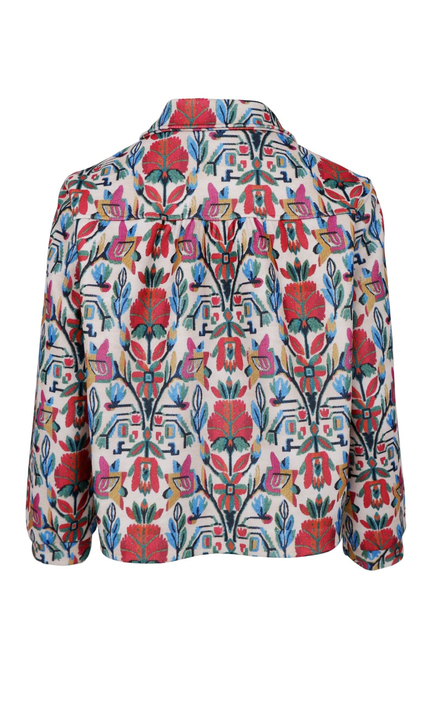 Farverig og stilfuld jakke fra Black Colour med et unikt, multifarvet blomsterprint, der giver et fint udtryk.