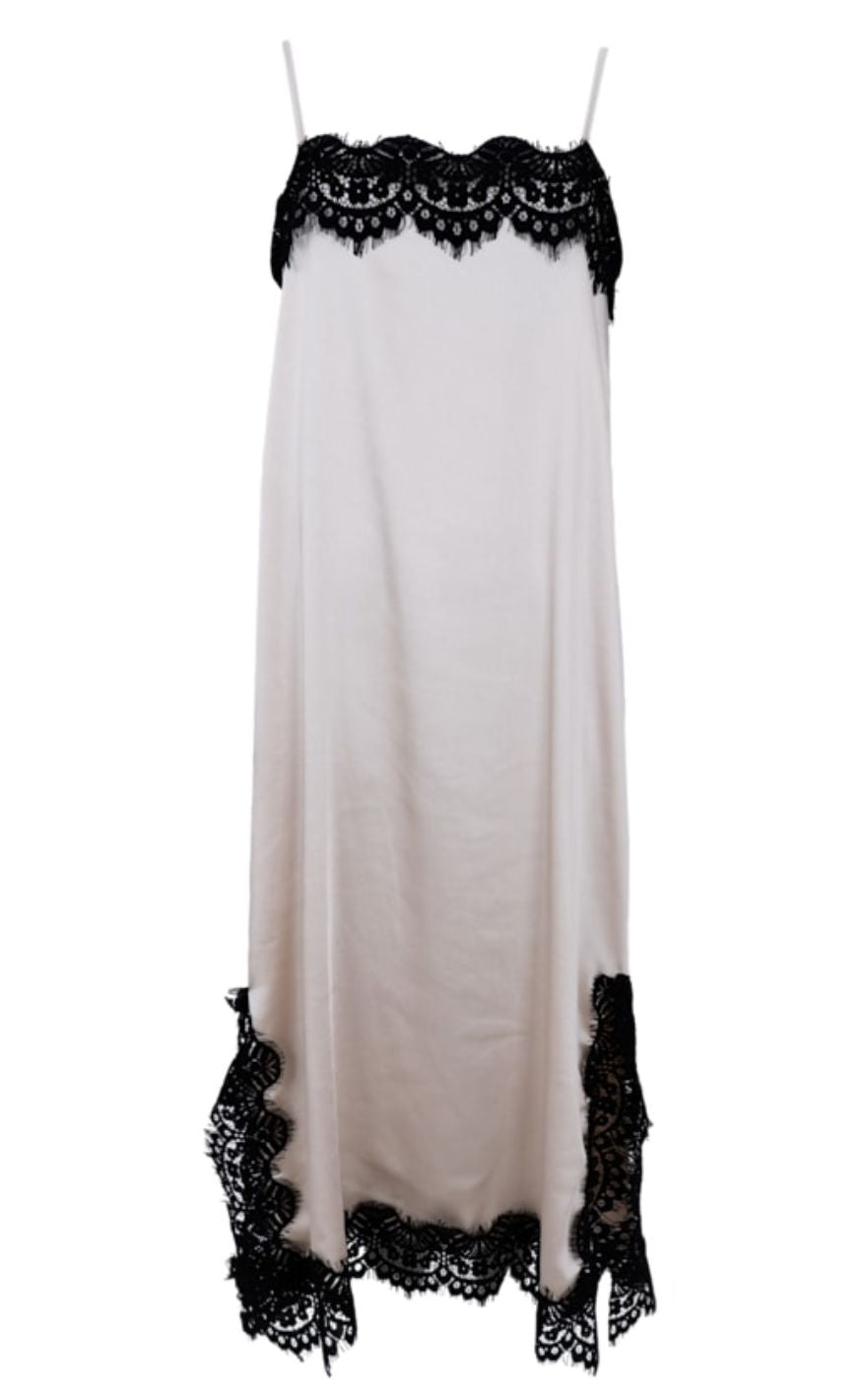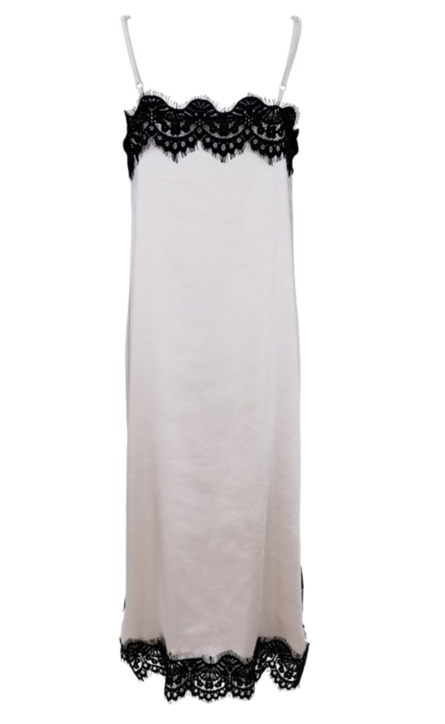 Satin kjole fra Black Colour i en flor perlefarve, med en sort blondekant.