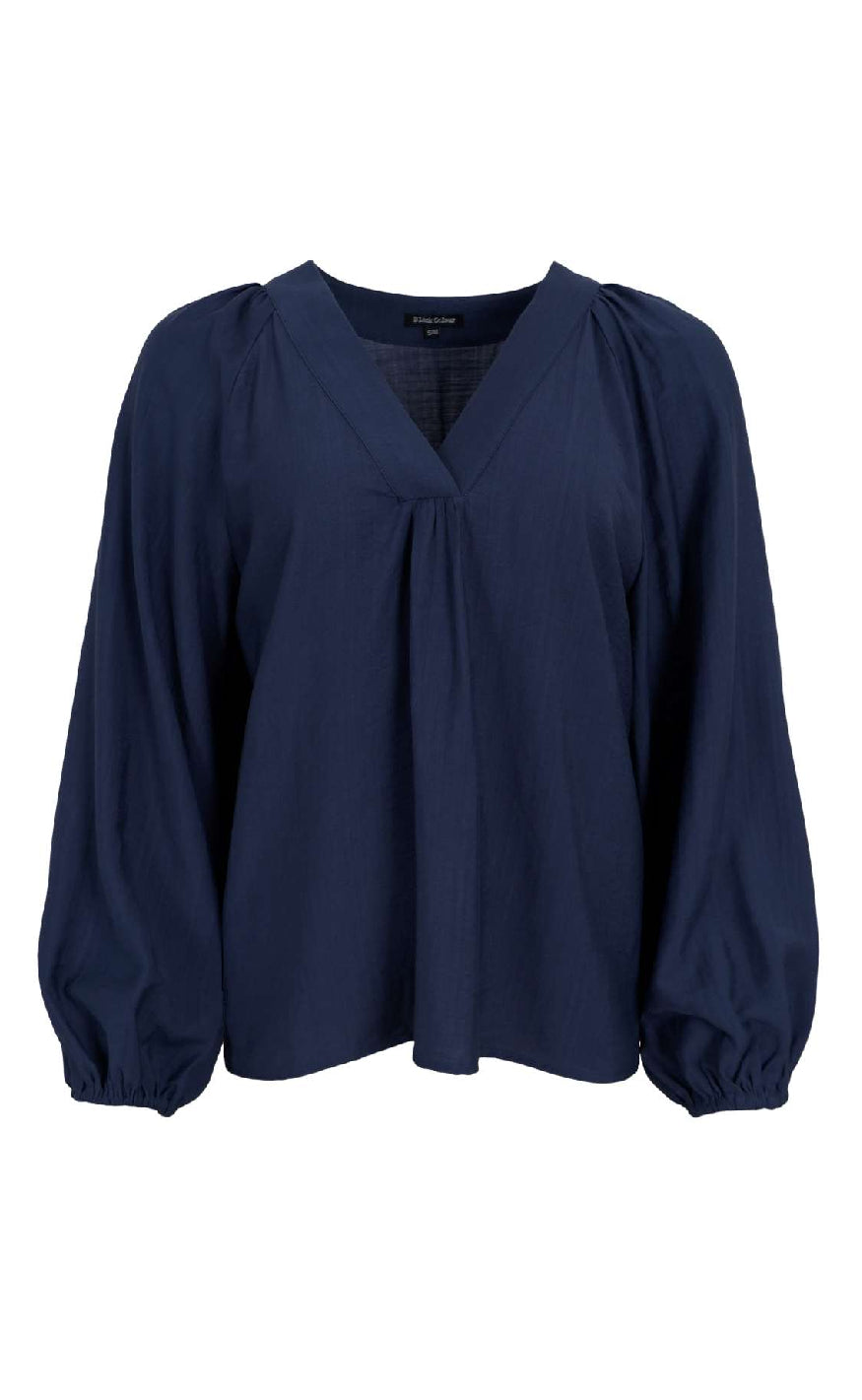 Feminin bluse fra Black Colour i navy, med raglan ærmer.
