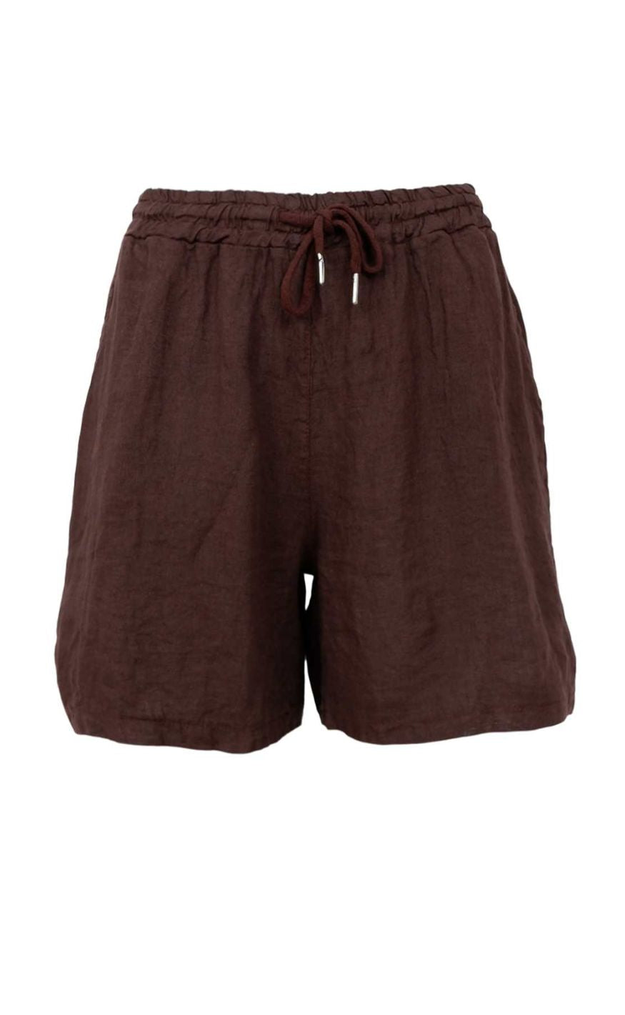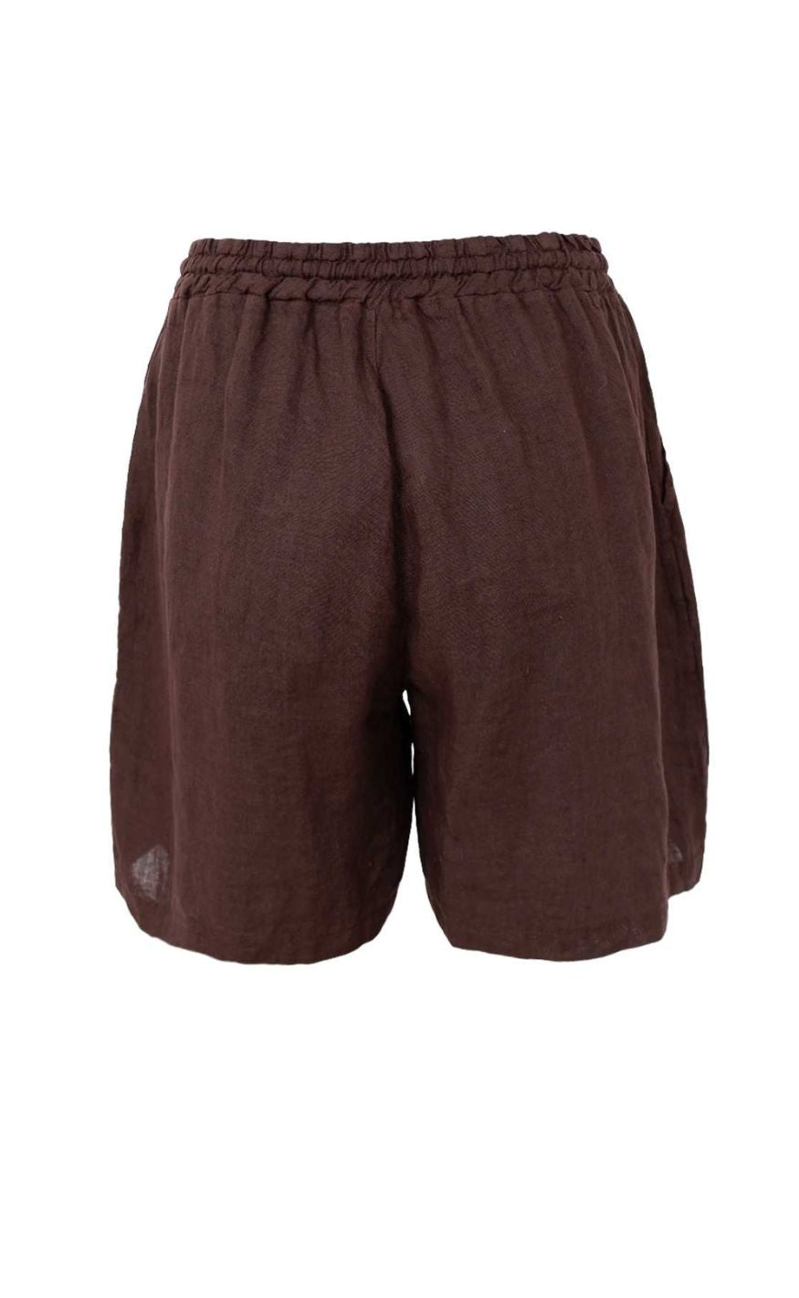 Black Colour Shorts - Melina Linen - Coffee