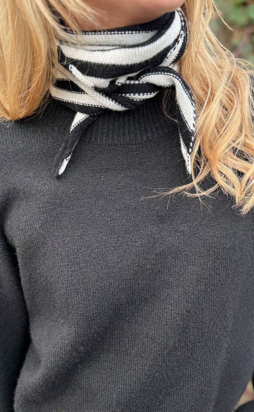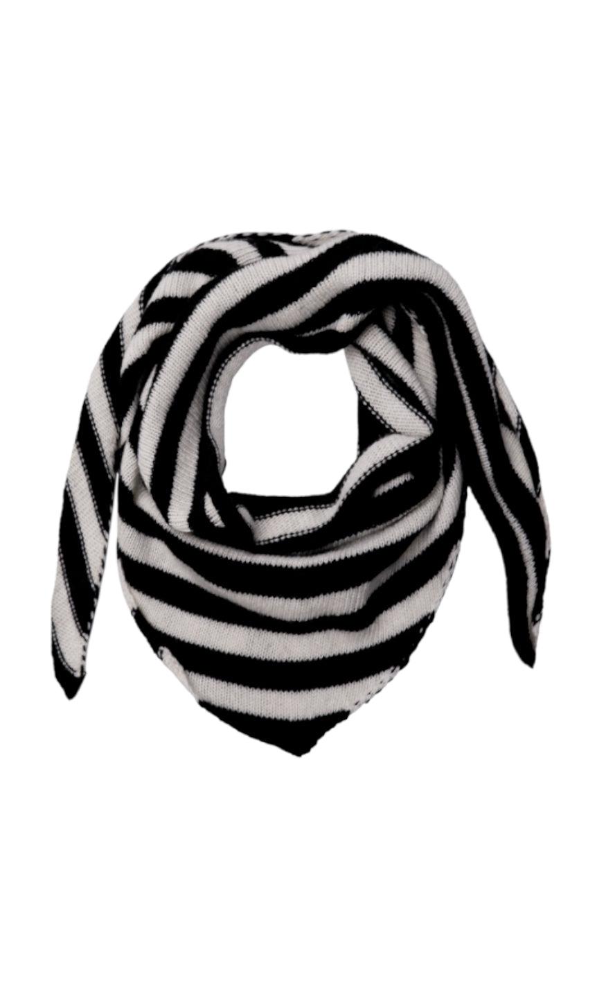 Strikket tørklæde fra Black Colour med sorte og hvide striber.