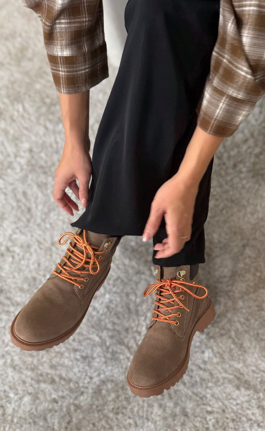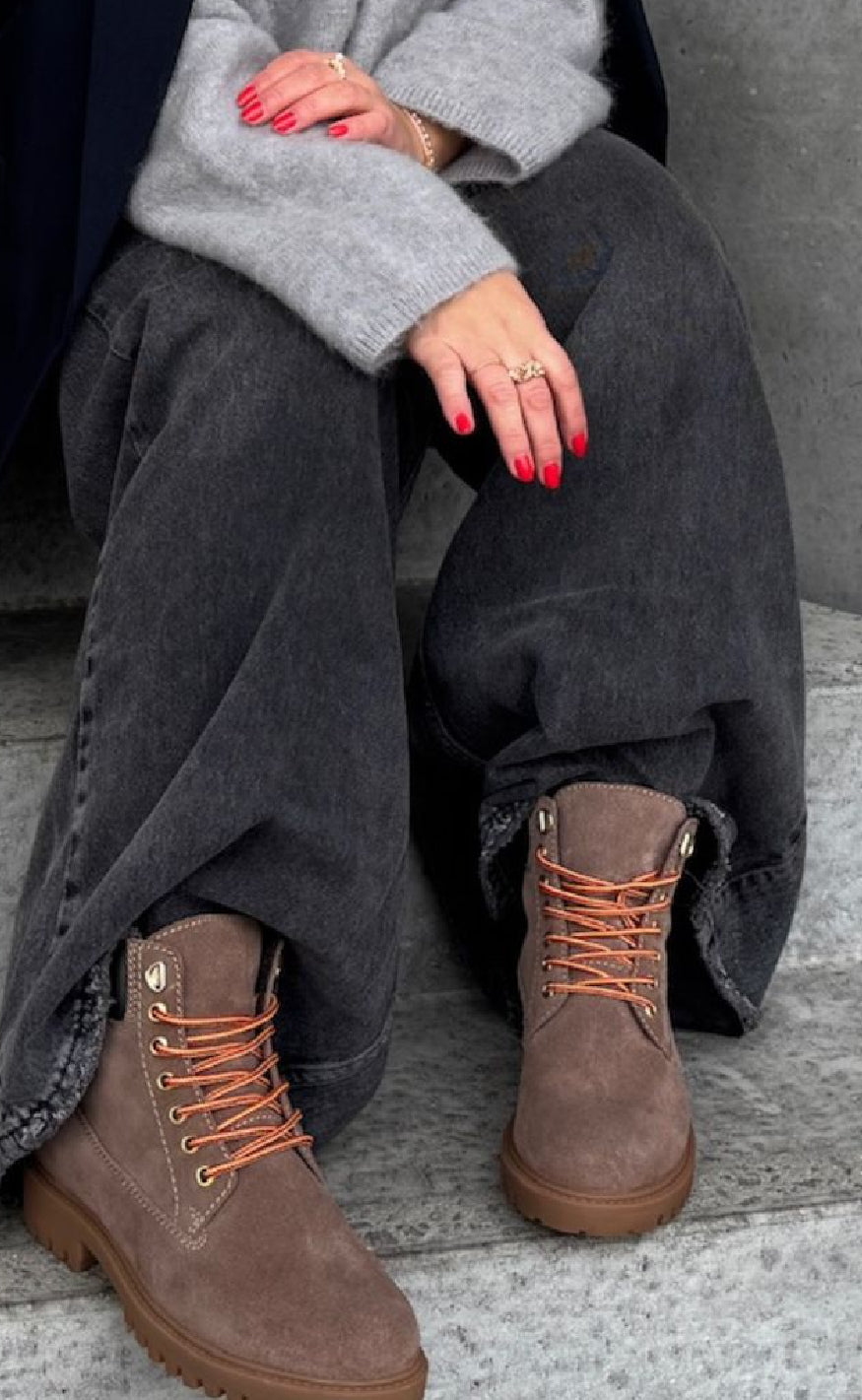 Cool støvler fra Copenhagen Shoe i en brun nuance med snørebånd.