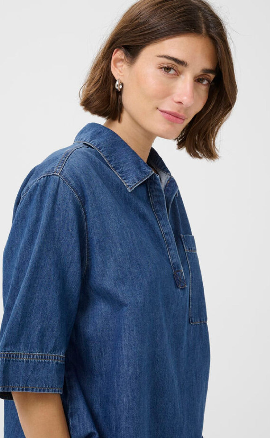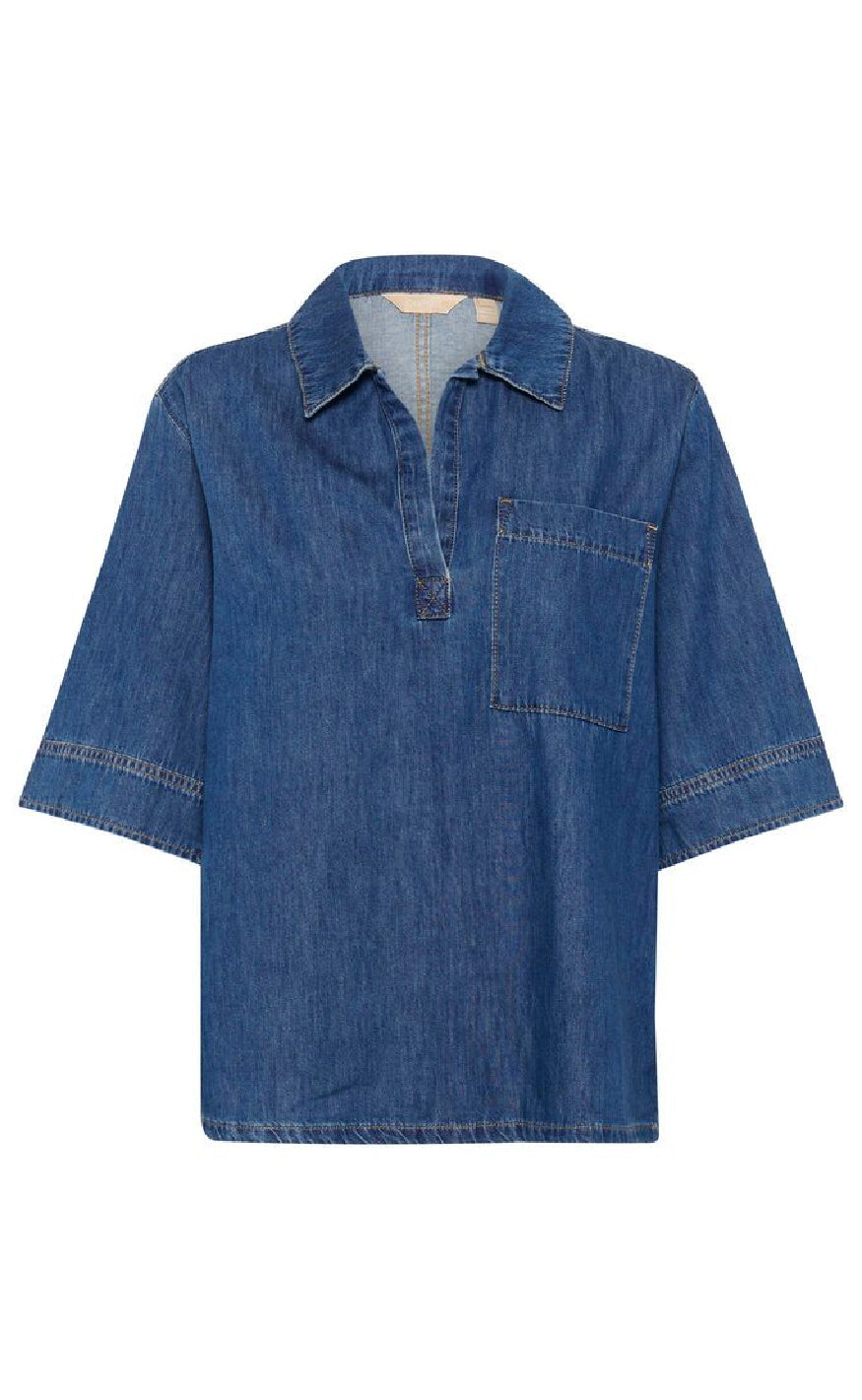 Blusen har 3/4 lange ærmer, en krave samt én brystlomme.