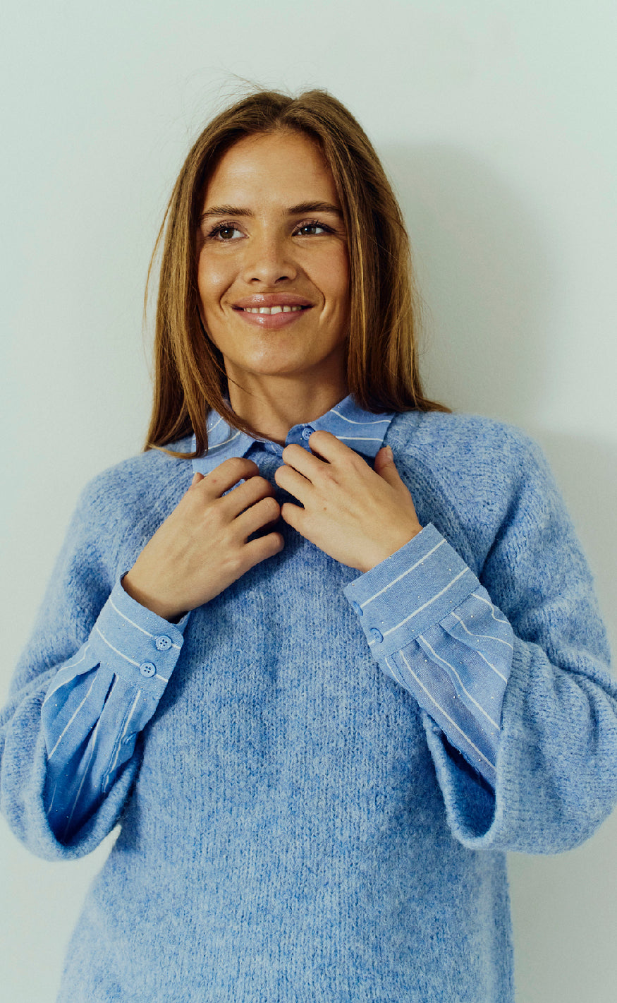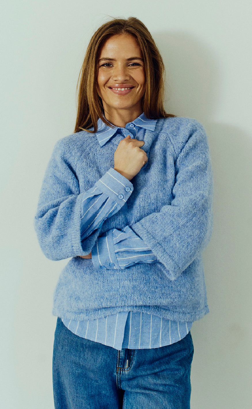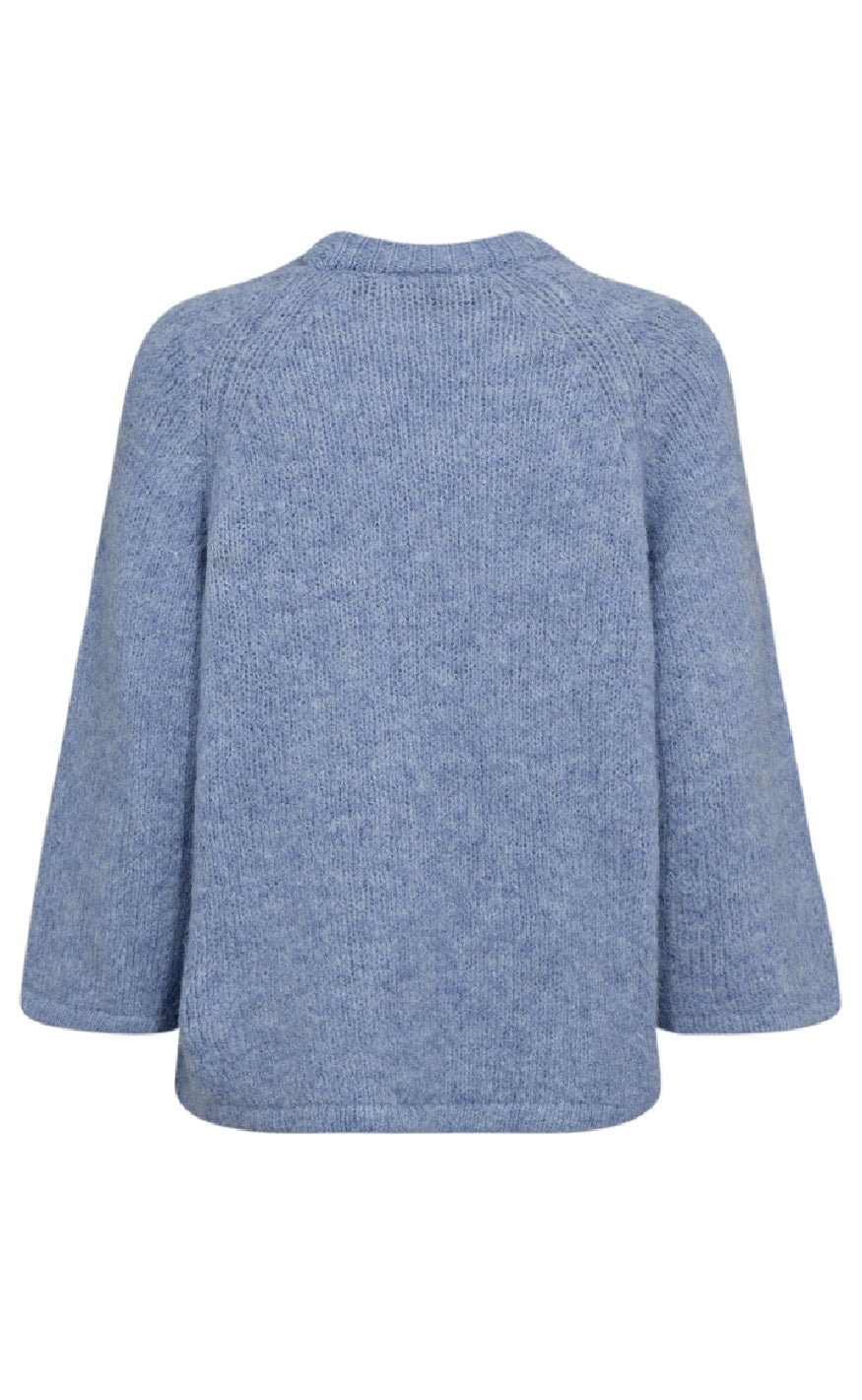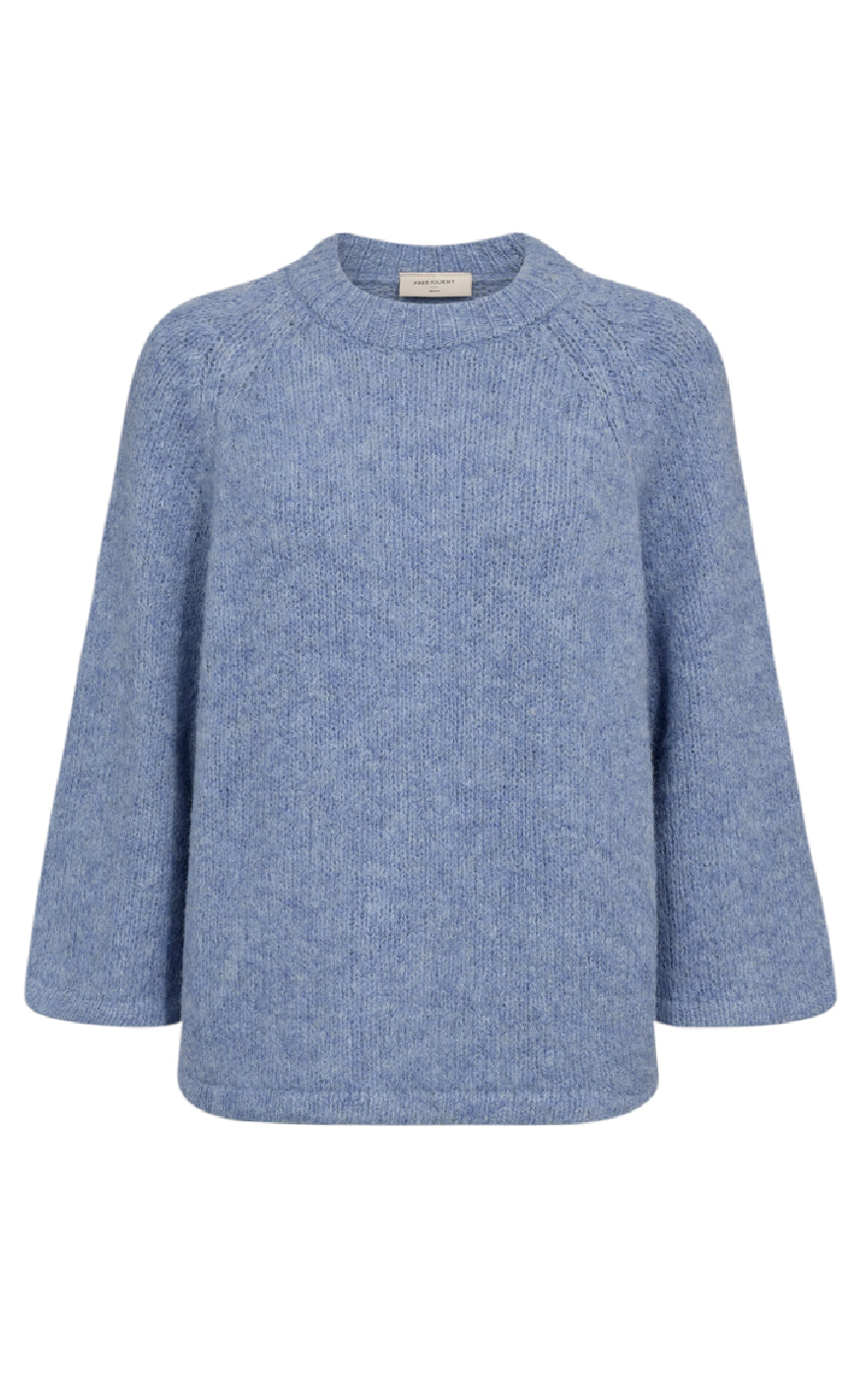 Strik pullover fra Freequent i en lyseblå farve.