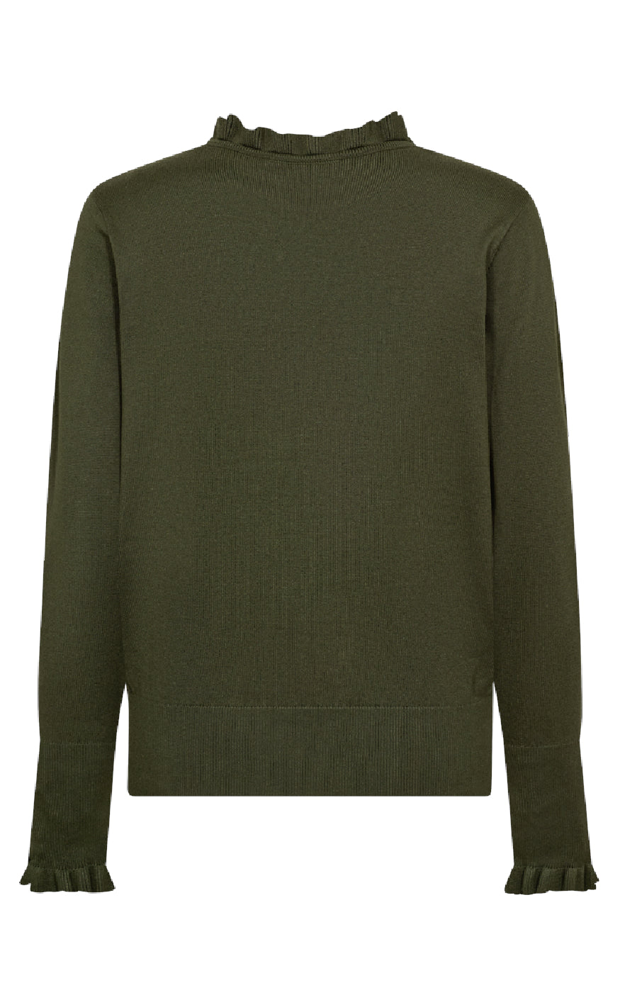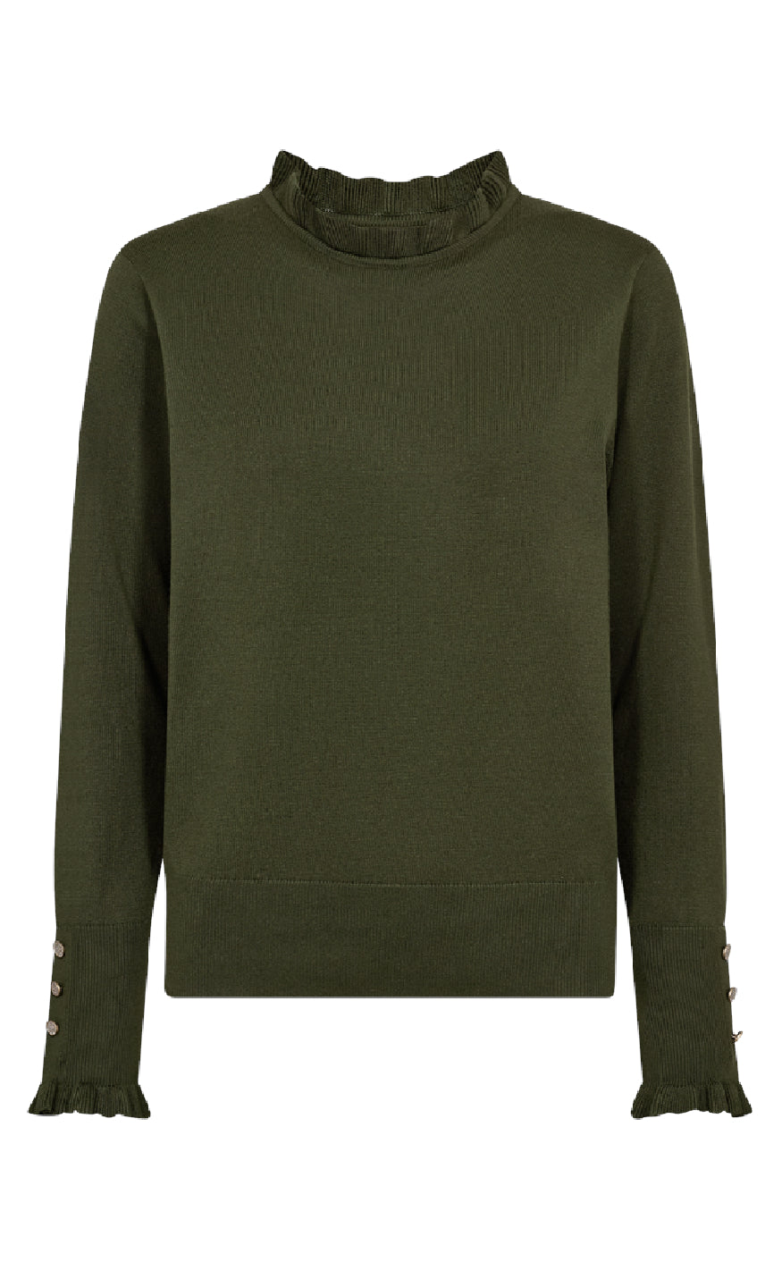 Lækker bluse fra Freequent i et blødt, finstrikket materiale. Blusen har flæser i halsudskæringen og dekorative knapper med små rhinsten på ærmerne