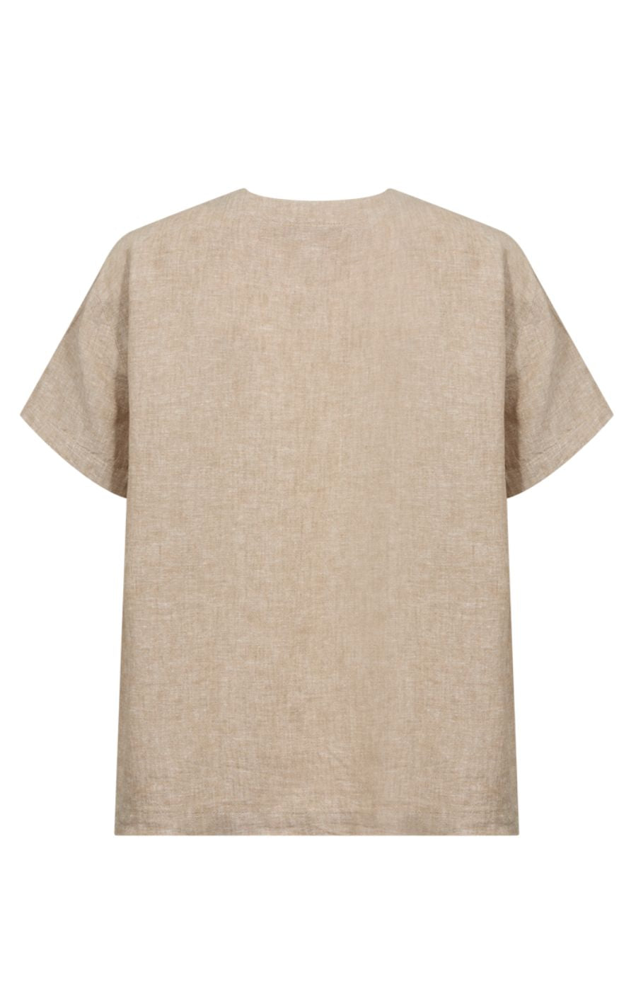 Freequent Skjorte - Lava SS V-neck - Sand Melange