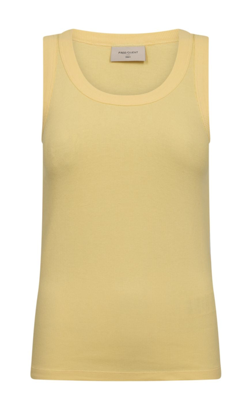 Basic top fra Freequent I gul, I en ribbet kvalitet.