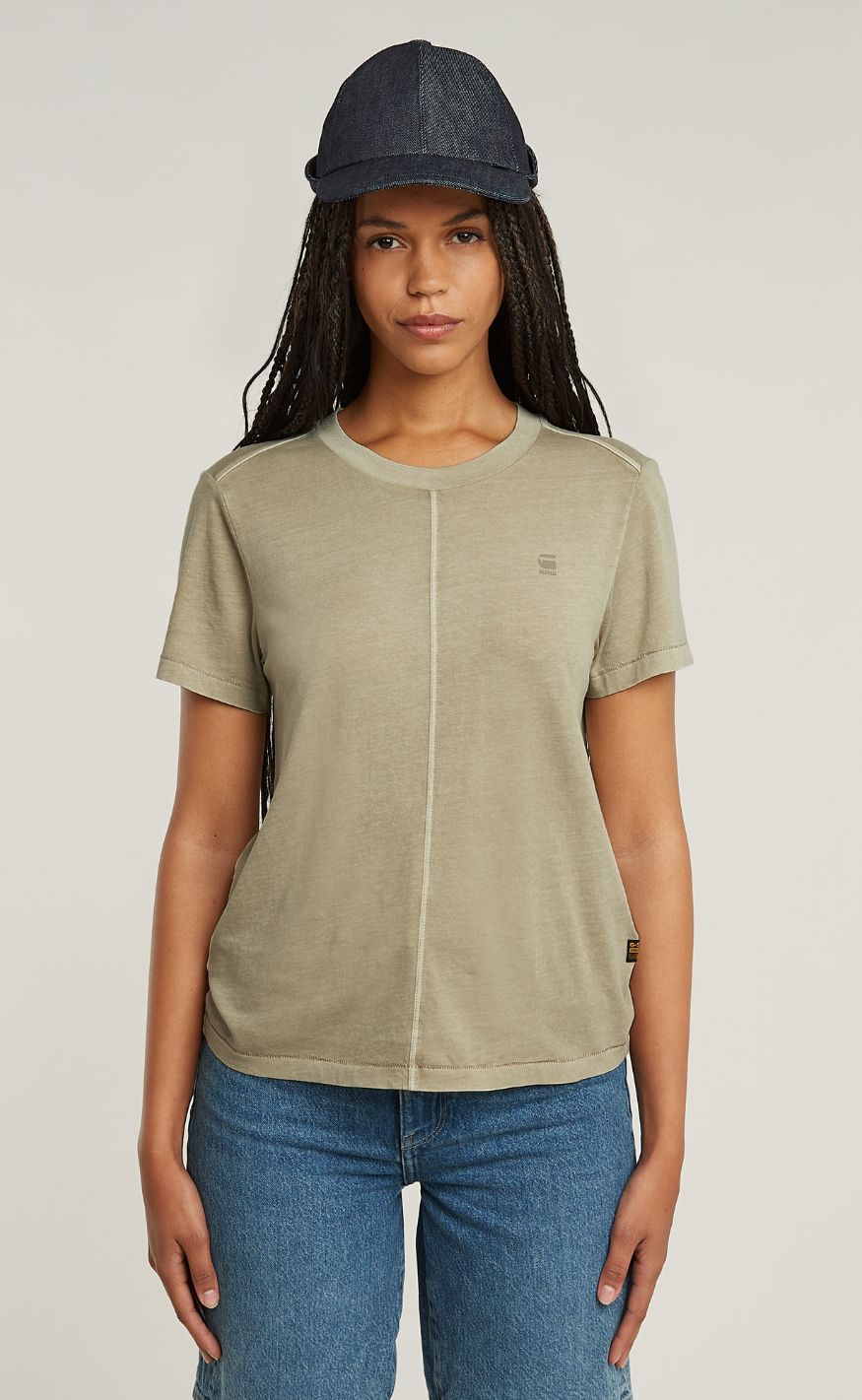 Klassisk og alsidig T-shirt fra G-STAR i en afdæmpet grøn nuance. T-shirten har korte ærmer, rund hals og en dekorativ midtersøm foran, der tilfører et råt og moderne twist til det enkle design.