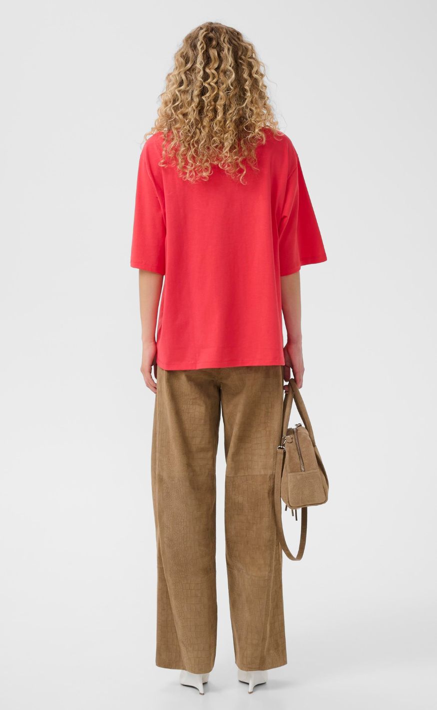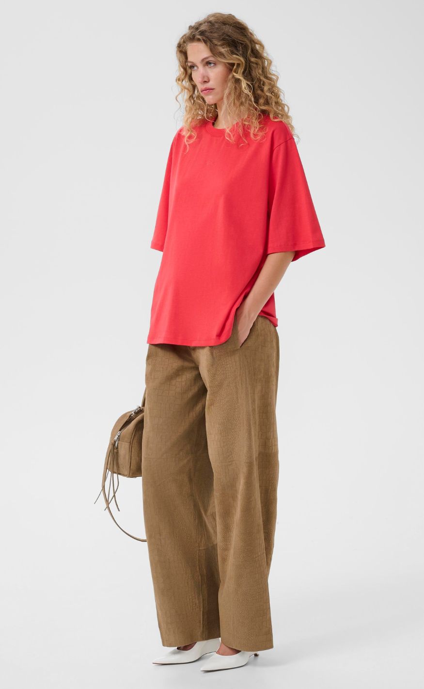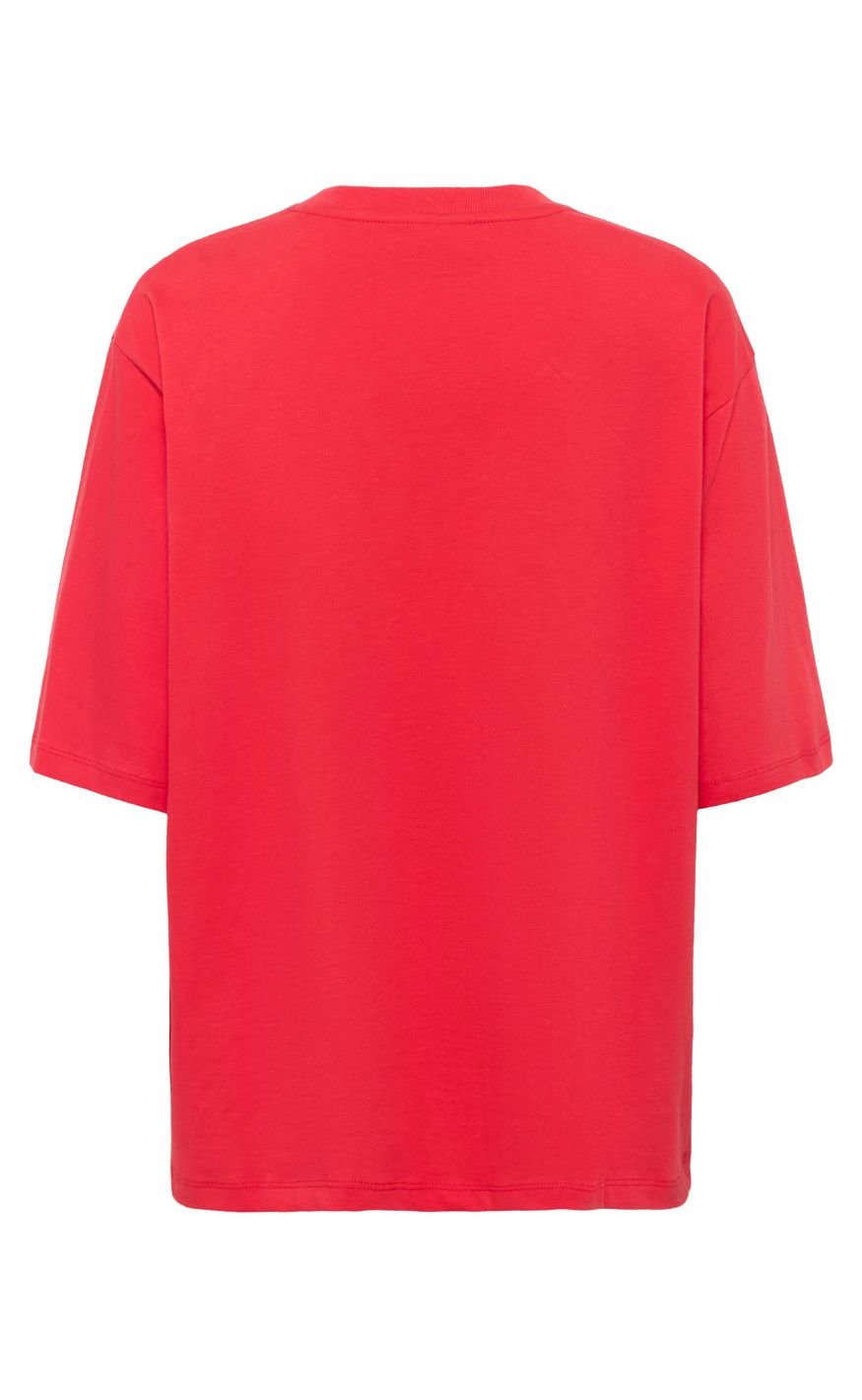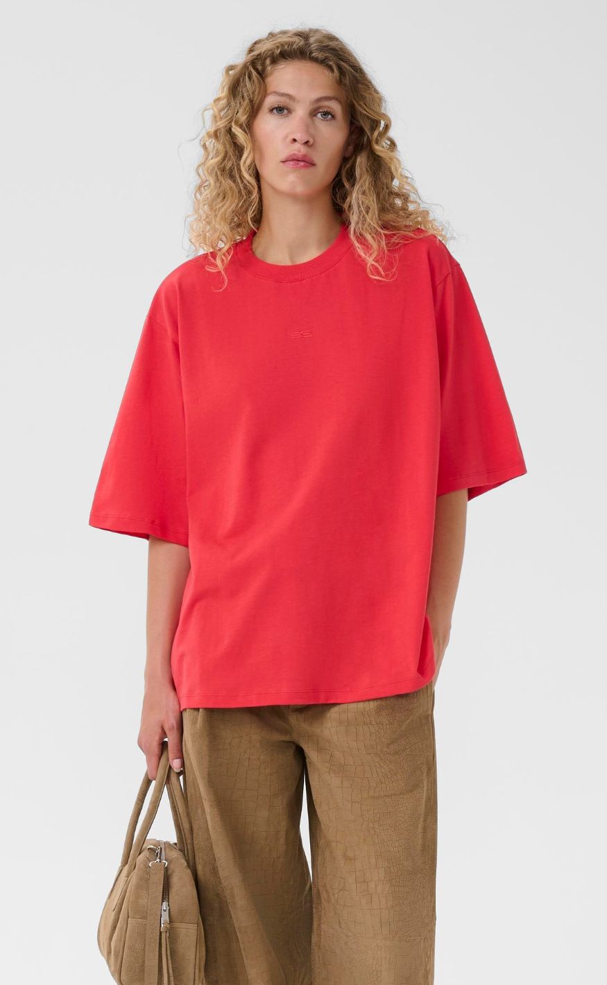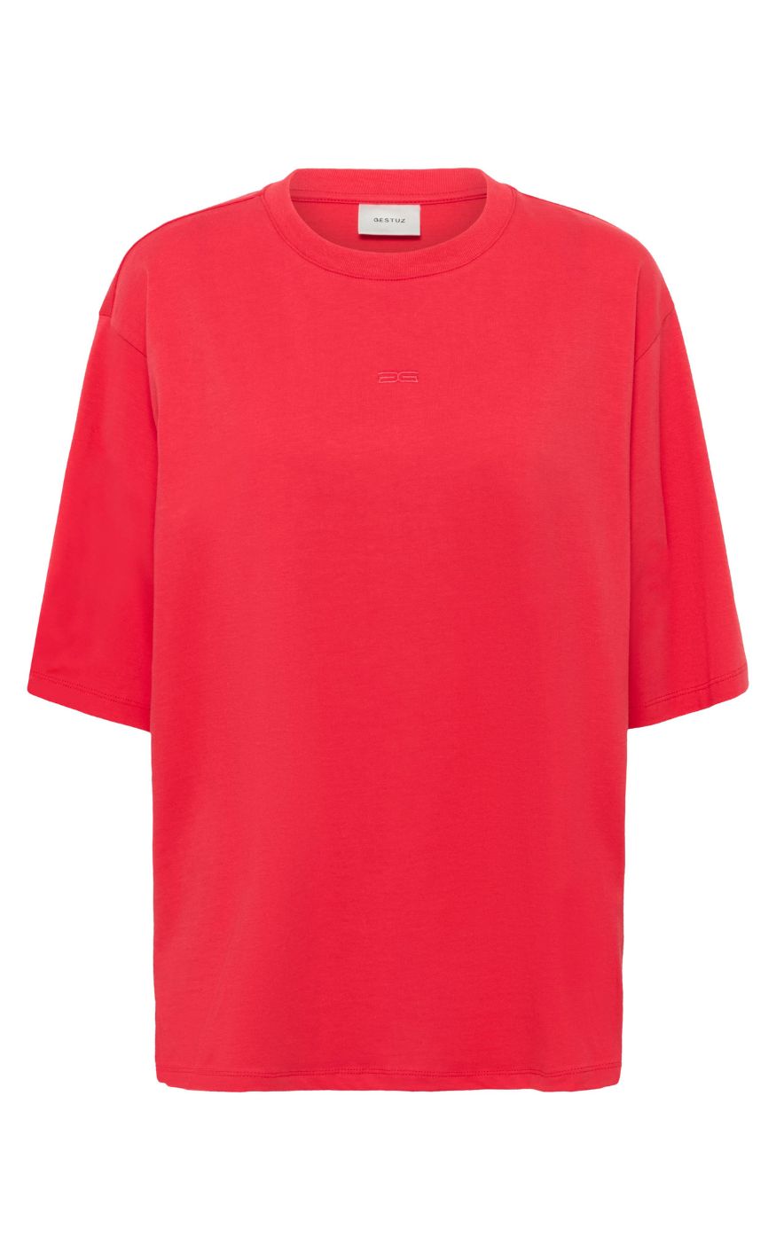 Enkel t-shirt fra Gestuz i en klar rød farve med et rent og afslappet udtryk. Den runde halsudskæring og de korte ærmer giver et klassisk snit med en let oversized pasform.