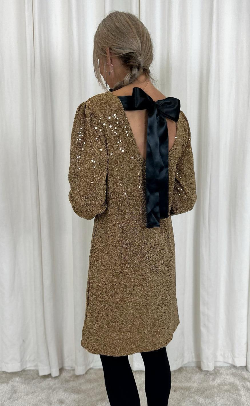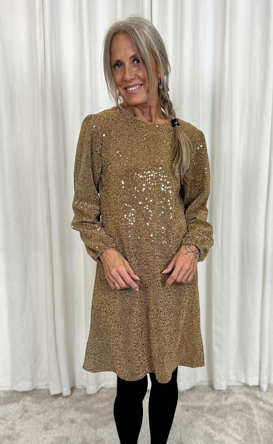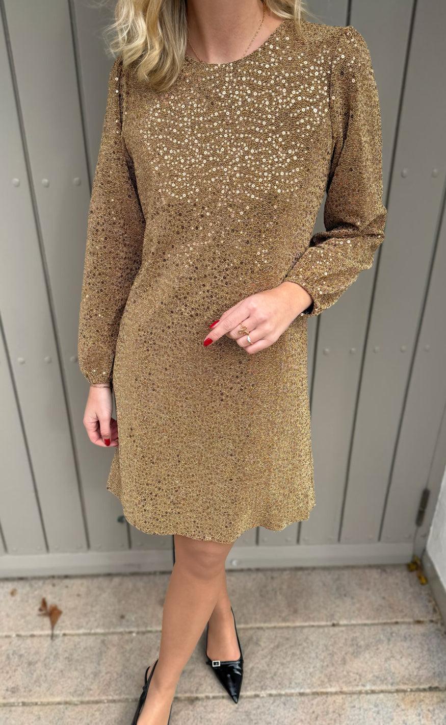 Fin kjole fra INA Copenhagen med palietter i guld nuancer.