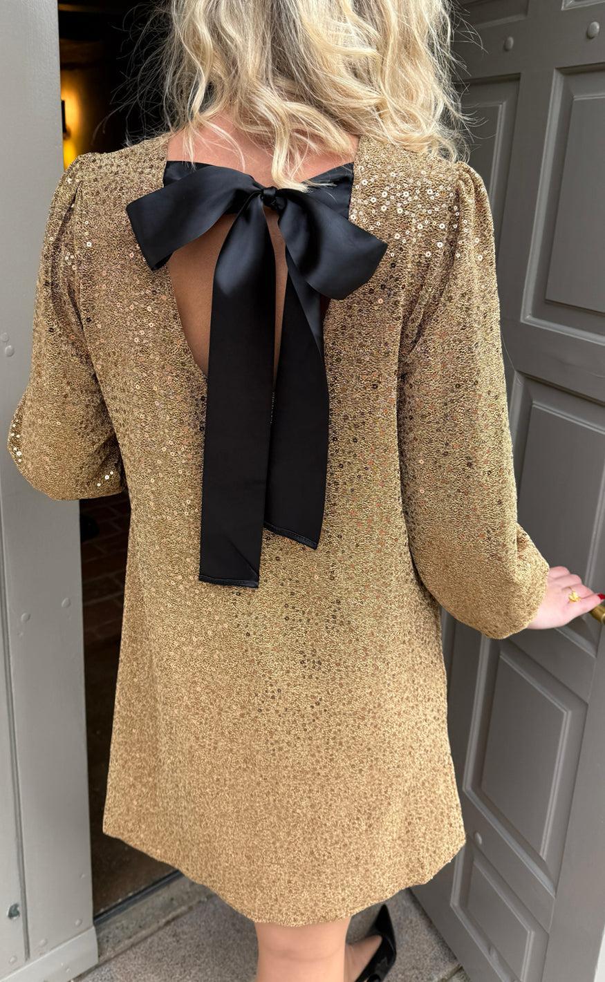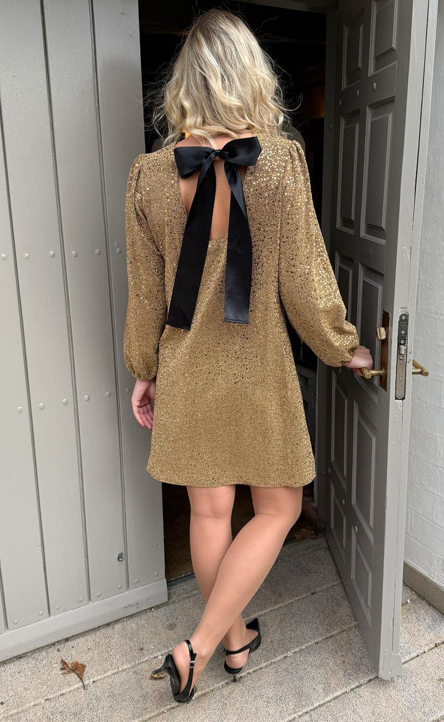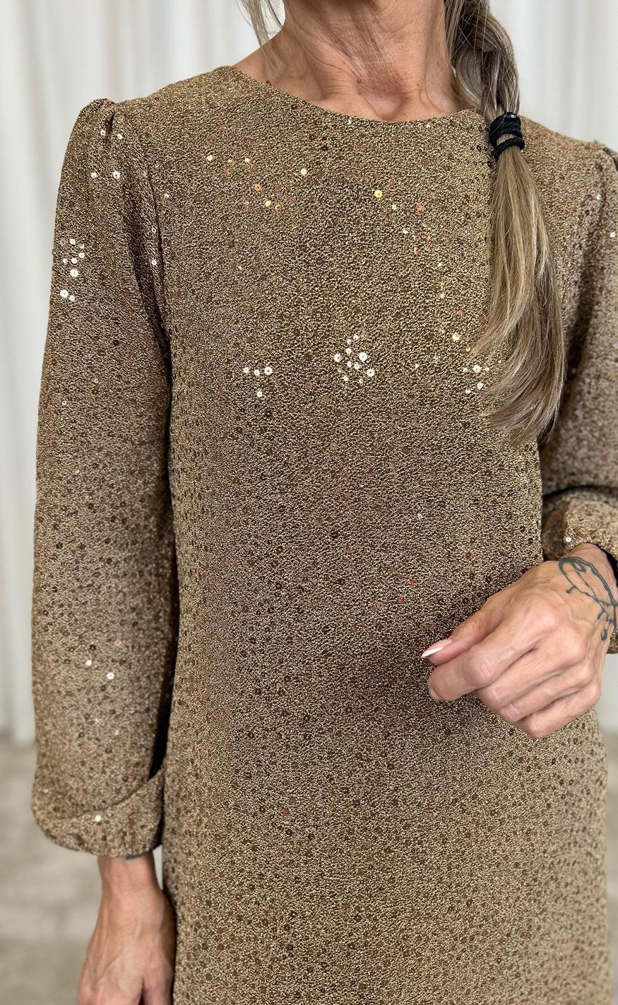 Fin kjole fra INA Copenhagen med palietter i guld nuancer.