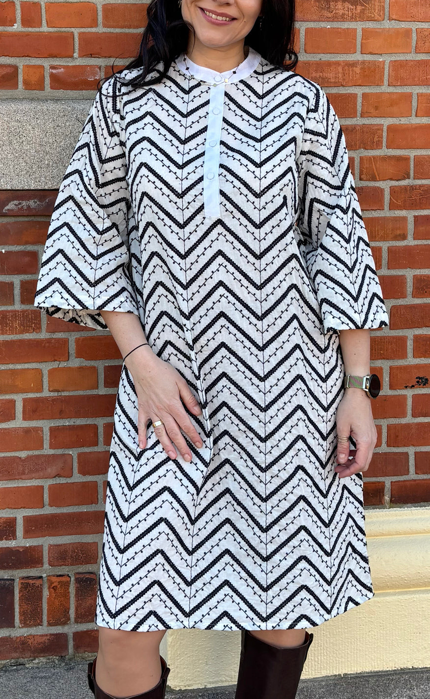 Say INA Copenhagen Kjole - Zara Zig Zag - White W. Black