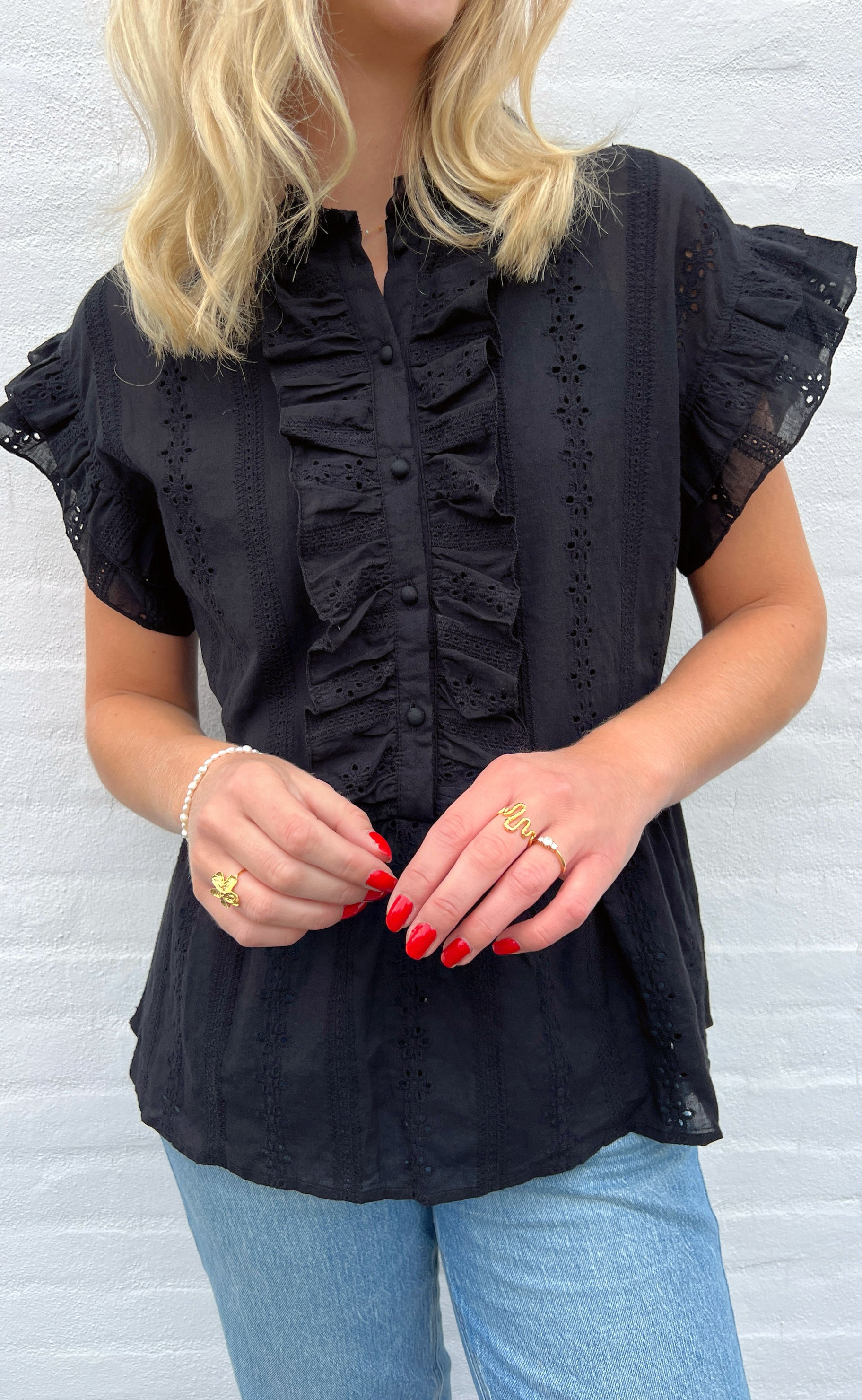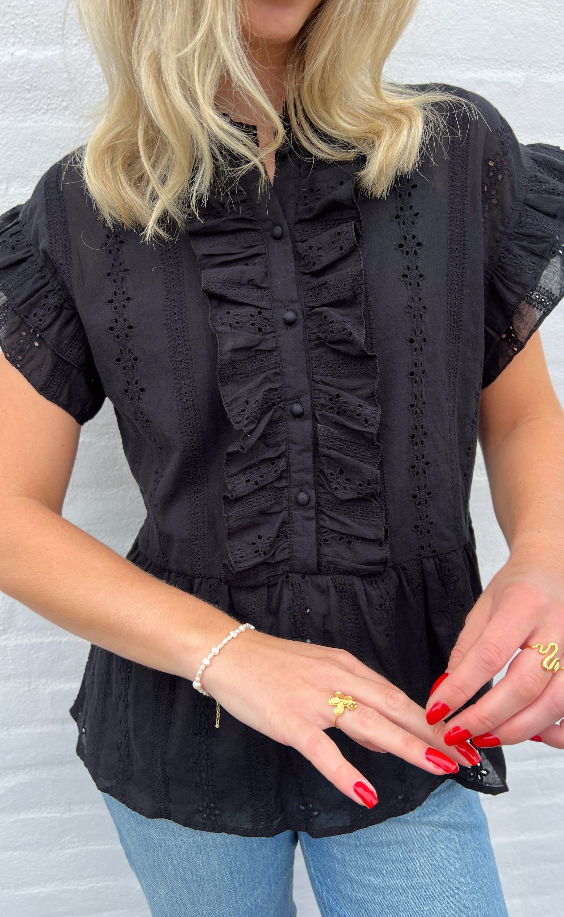 Smuk top fra INA Copenhagen i sort broderie anglaise.