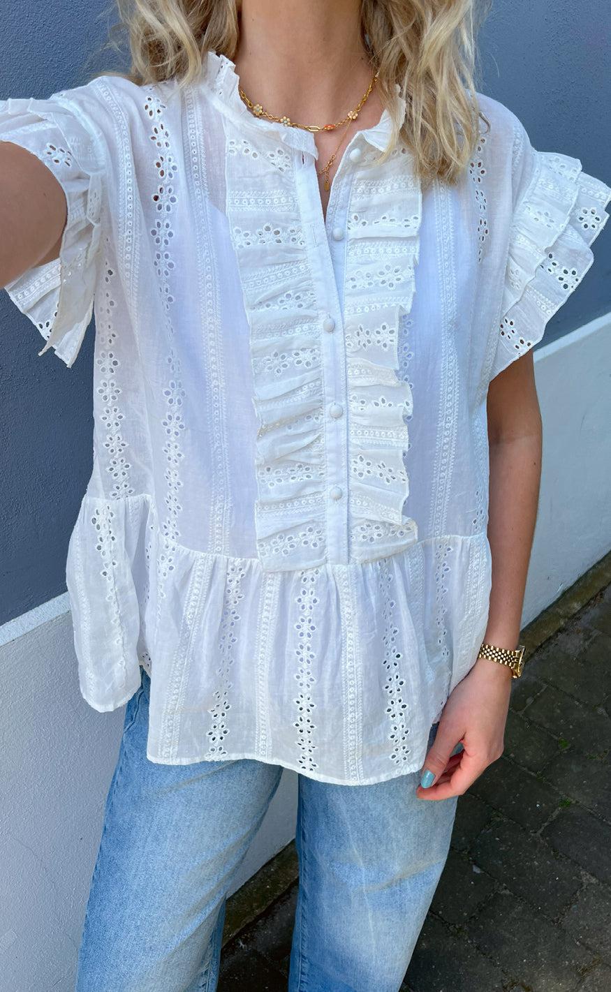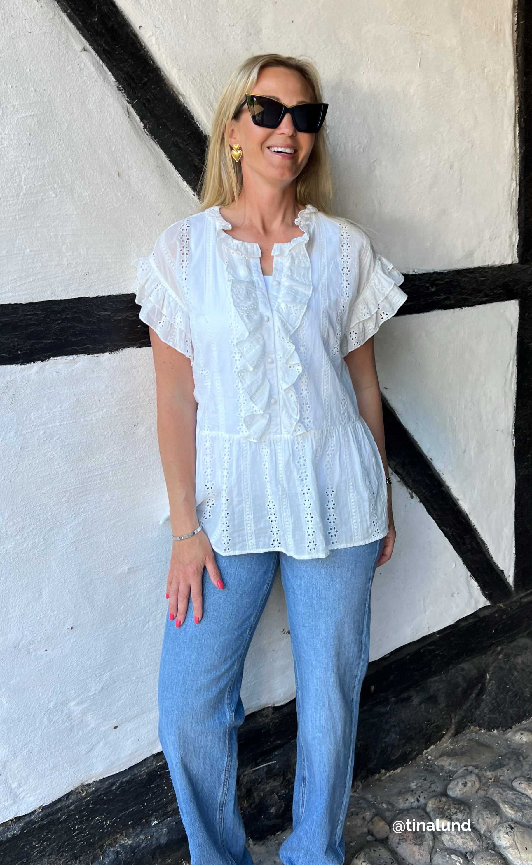 Smuk top fra INA Copenhagen i hvid broderie anglaise.