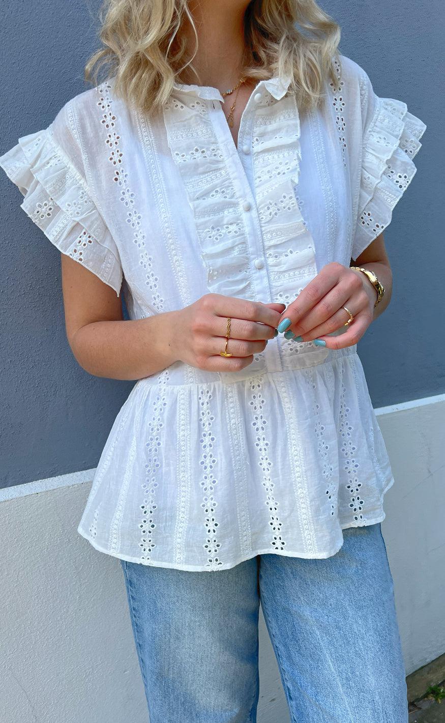 Say INA Copenhagen Top - Freya - White Broderie Anglaise