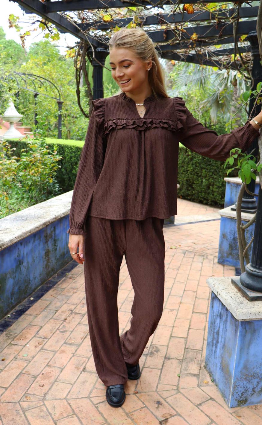 De lige, løse ben giver et elegant fald og gør bukserne nemme at style – både til hverdag med en enkel top og til mere festlige anledninger med en feminin bluse.