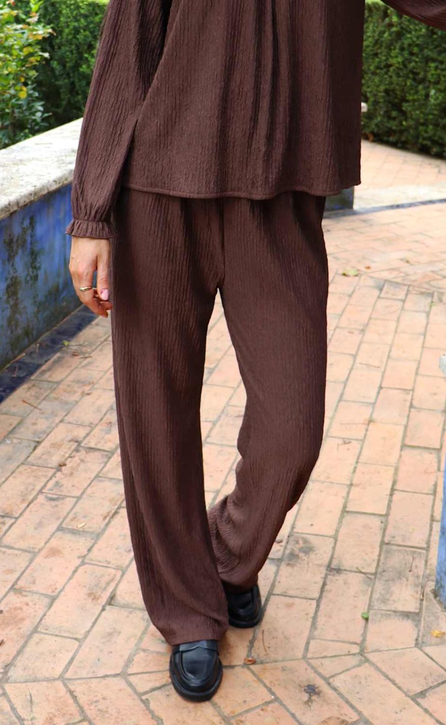 Lette og behagelige bukser i et blødt, struktureret materiale med en afslappet pasform. Modellen har elastik i taljen, som sikrer en komfortabel og fleksibel pasform hele dagen.