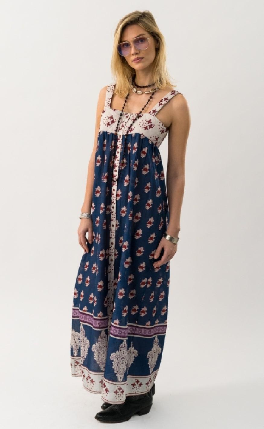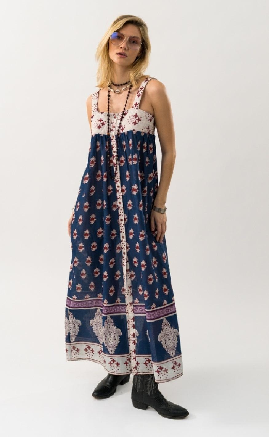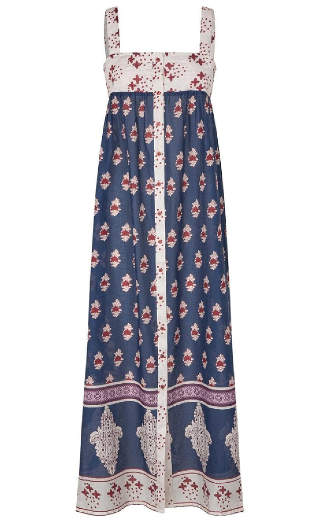 Kjolen har tynde stropper og er gennemknappet fortil.