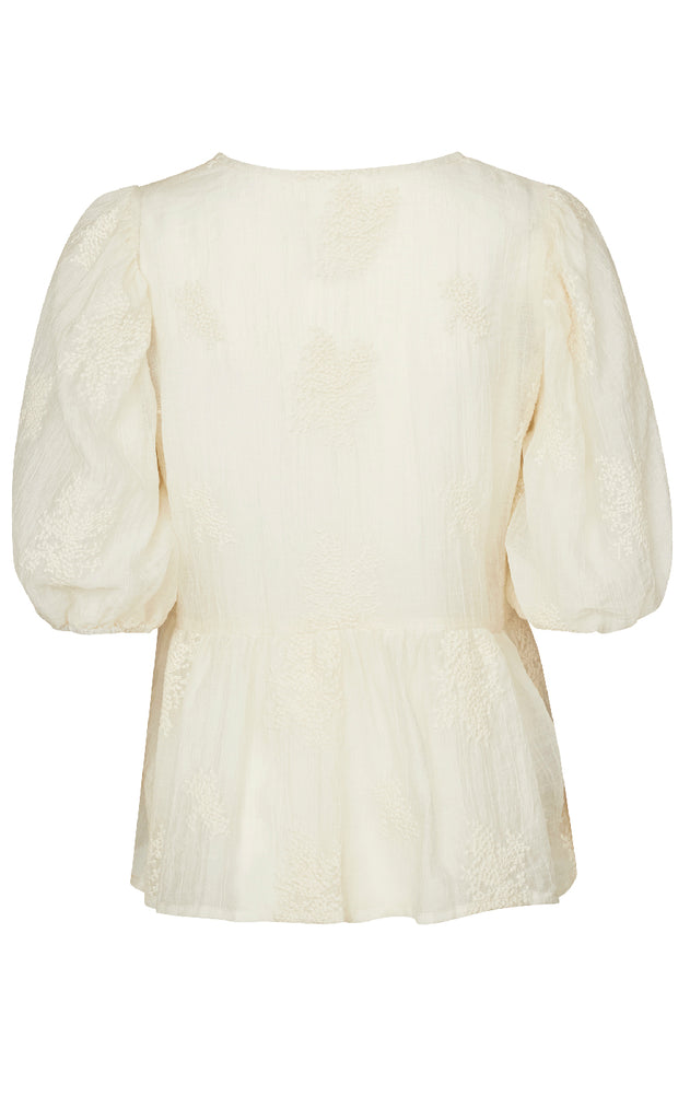 Feminin bluse fra Love & Divine i en creme farve.