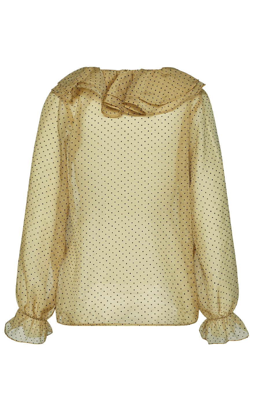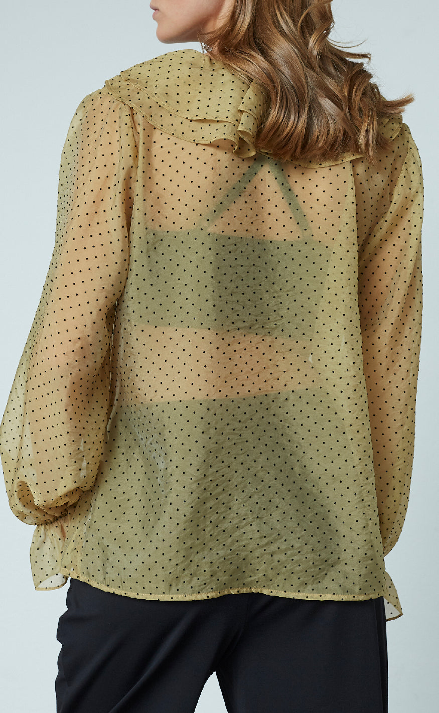 Fin bluse fra Love & Divine i gul, med sorte prikker.