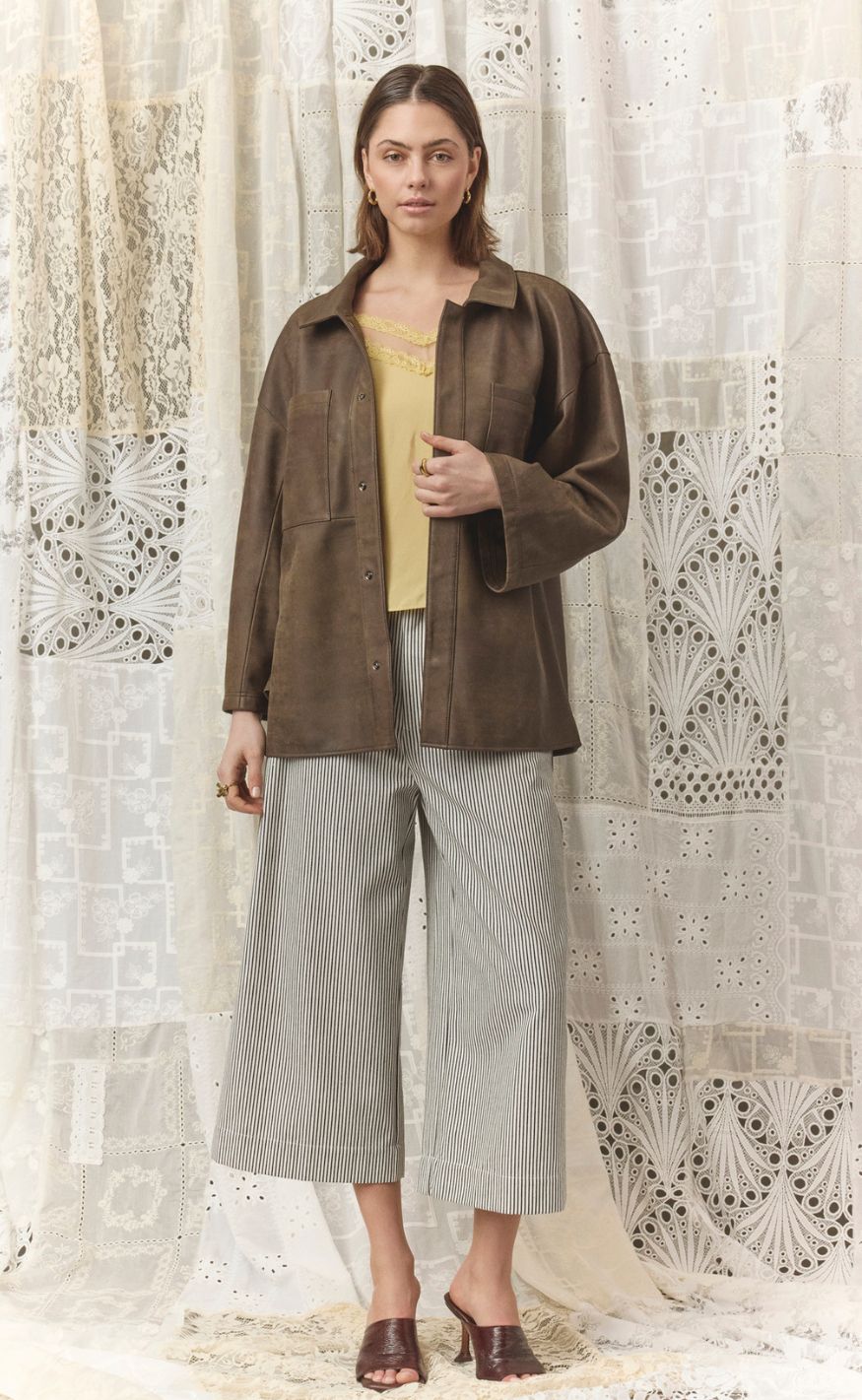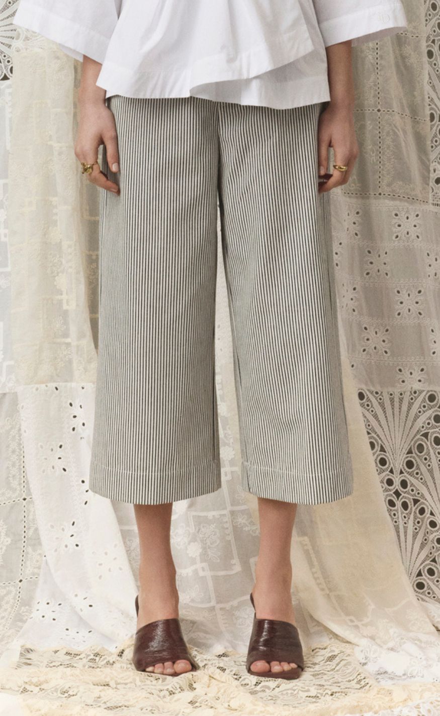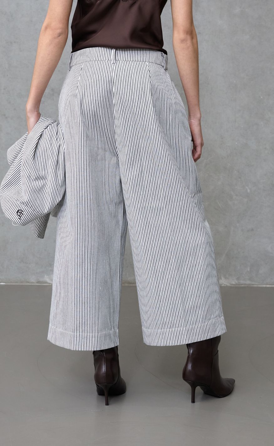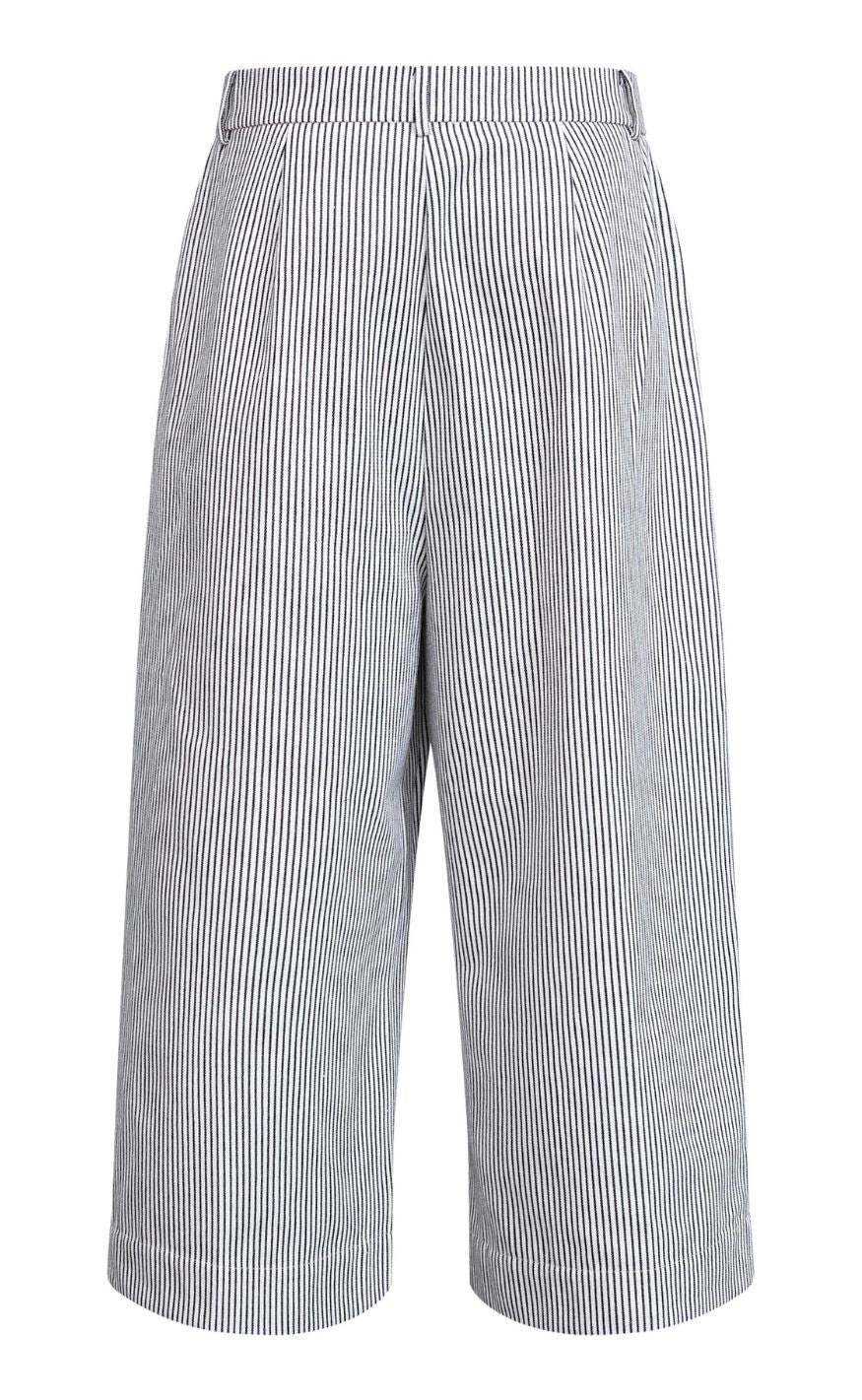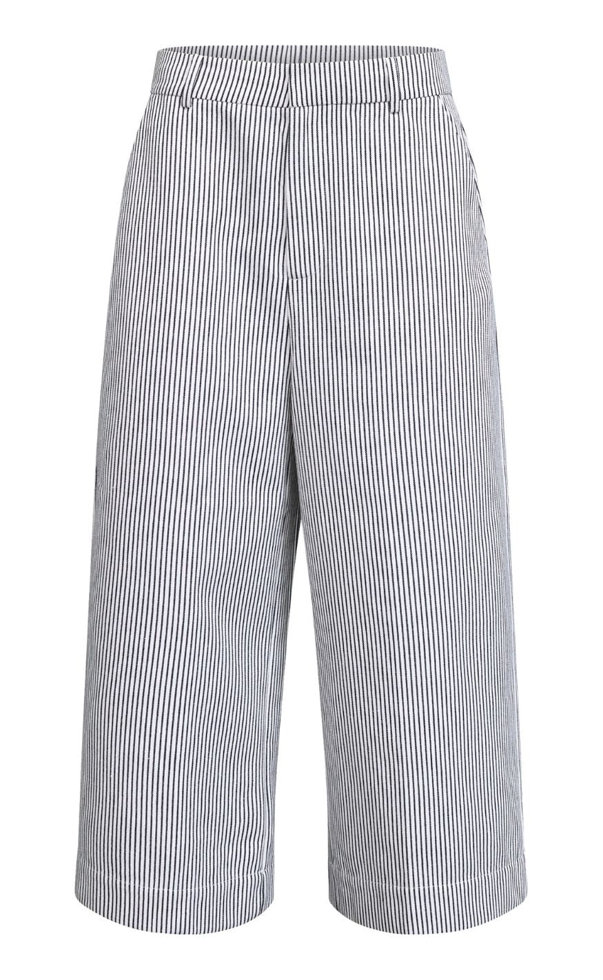 Stribede bukser i en let og behagelig kvalitet med et klassisk, tidløst udtryk. Bukserne har en afslappet pasform med lige, cropped ben, der giver et moderne look.