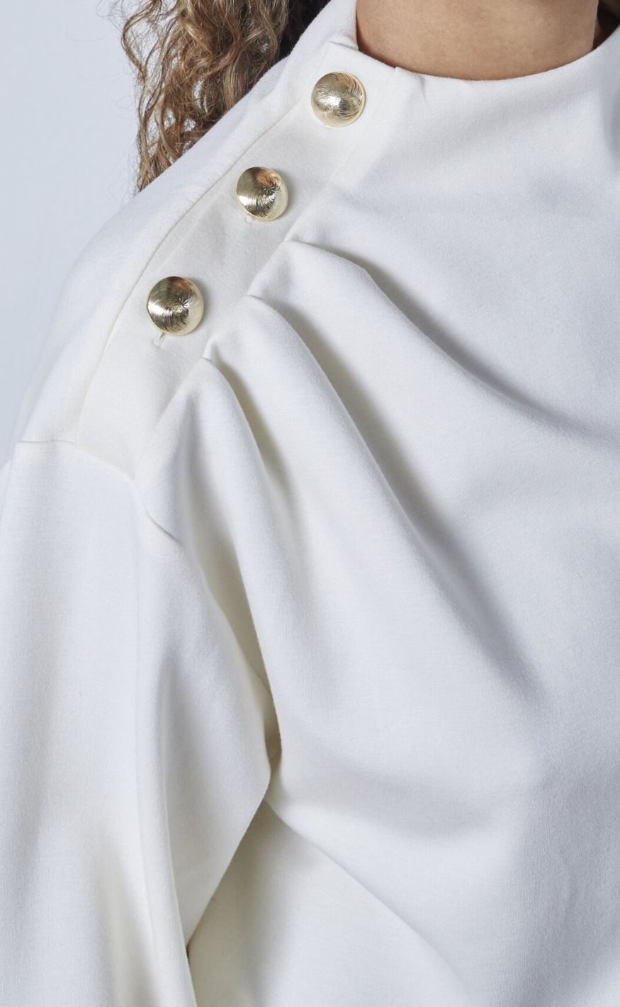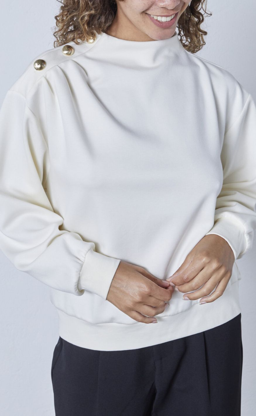 Sweatshirt med høj hals og dekorative, guldfarvede knapper på skulderen.