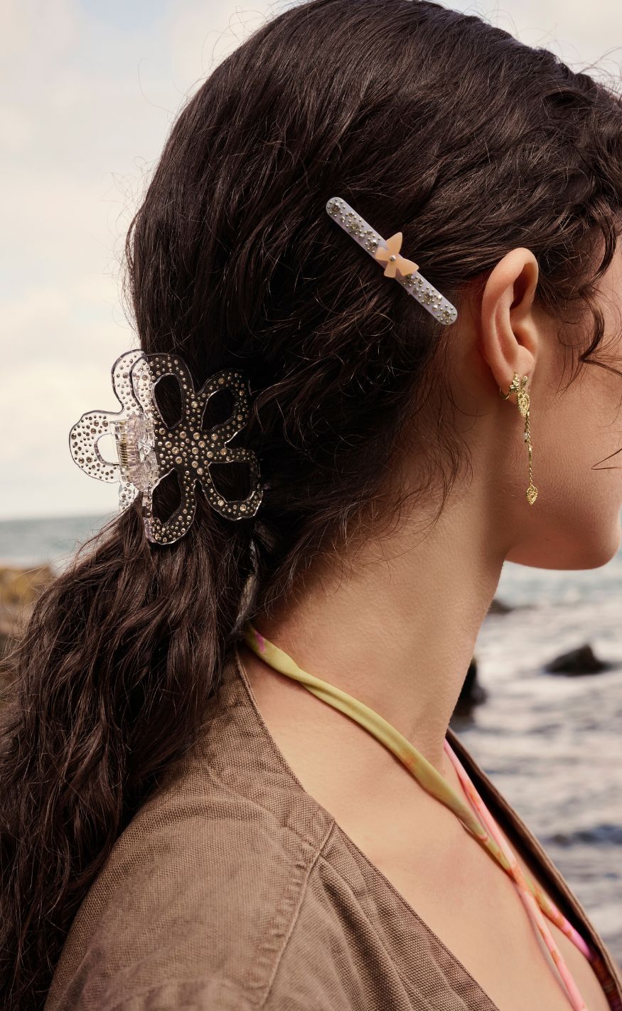 Den feminine blomsterform giver et eksklusivt touch og holder håret smukt på plads – perfekt til både hverdag og fest.