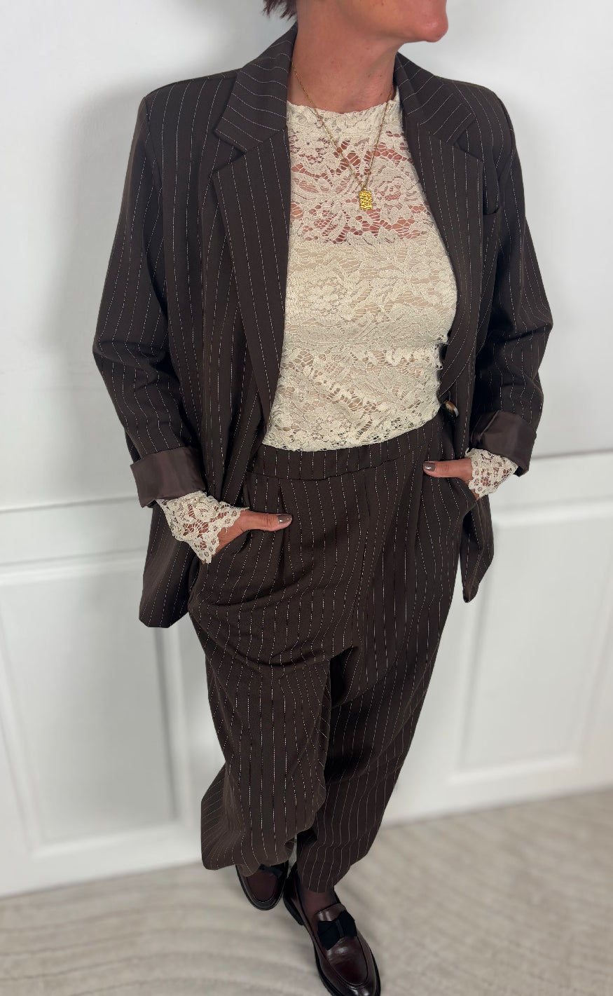 Lækker blazer fra Marta Du Chateau i et brunt nålestrib print.