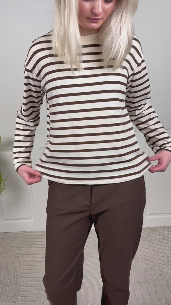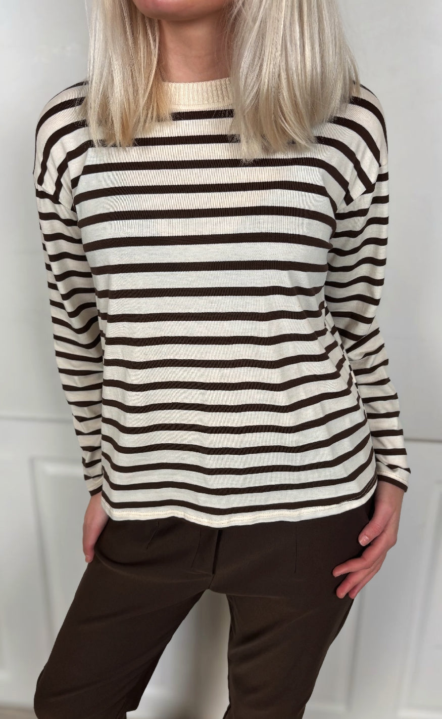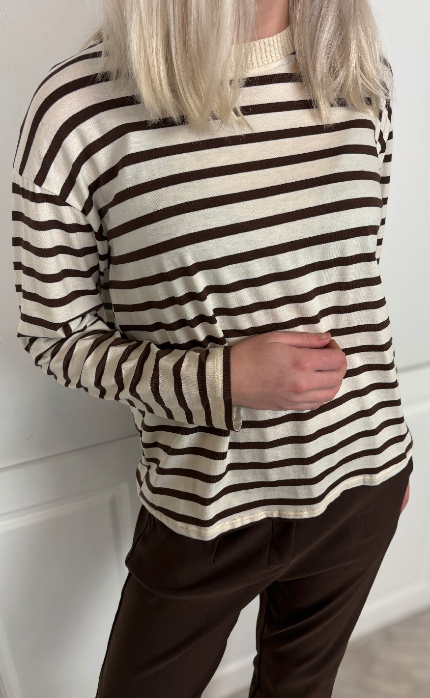Stribet bluse fra Marta Du Chateau i creme og brune nuancer.